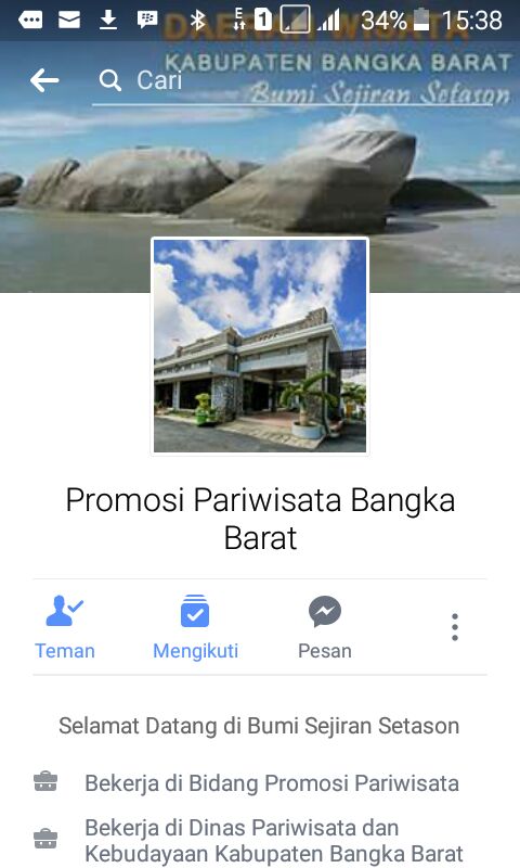 MUNTOK. Untuk mempromosikan pariwisata Bangka Barat Dinas Pariwisata dan Budaya Bangka Barat melakukan terobosan baru, saat ini ada facebook dengan akun PROMOSI PARIWISATA BANGKA BARAT.