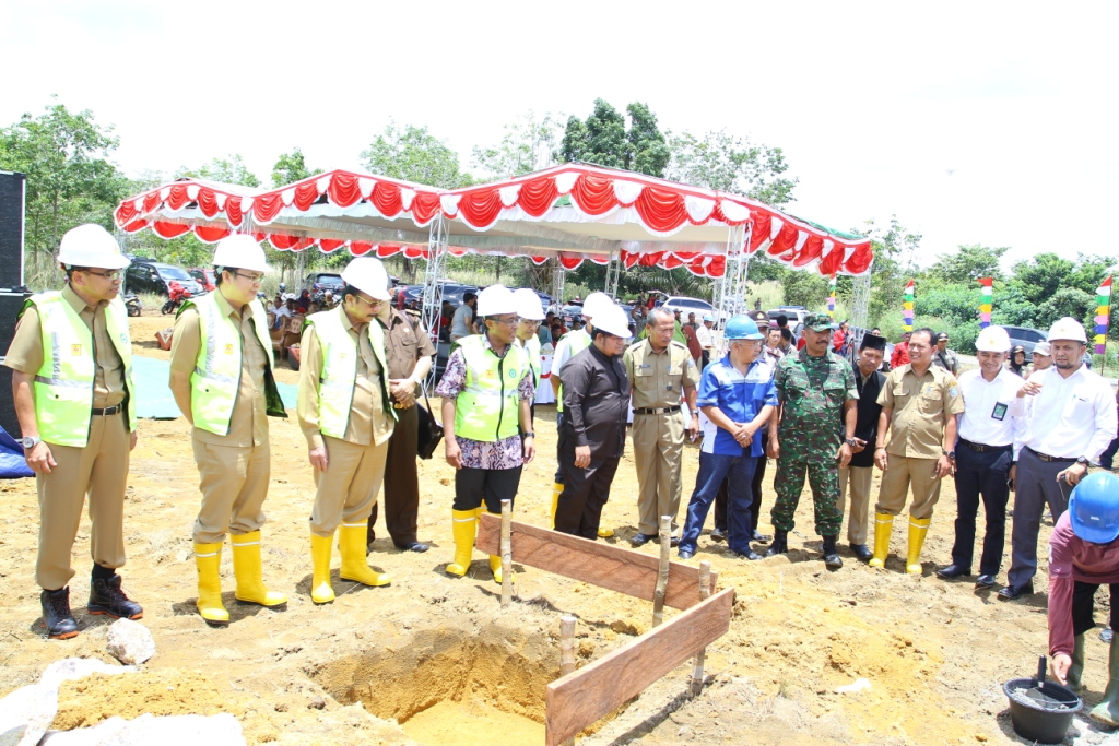 MUNTOK— Bupati Bangka Barat, Drs. H. Parhan Ali,. MM, melakukan peletakan batu pertama dalam pembangunan gardu induk berkapasitas 150 kV dan pembangunan SUTT 150 kV Kelapa-Muntok di dampingi General Manager PT. PLN, Ketua DPRD Bangka Barat, Kajari Muntok, Kapolres Bangka Barat, Wakil Bupati, Sekretaris Daerah Bangka Barat, Danramil Muntok serta Kepala OPD di Lingkungan Pemkab Bangka Barat, di Muntok, senin (27/3).