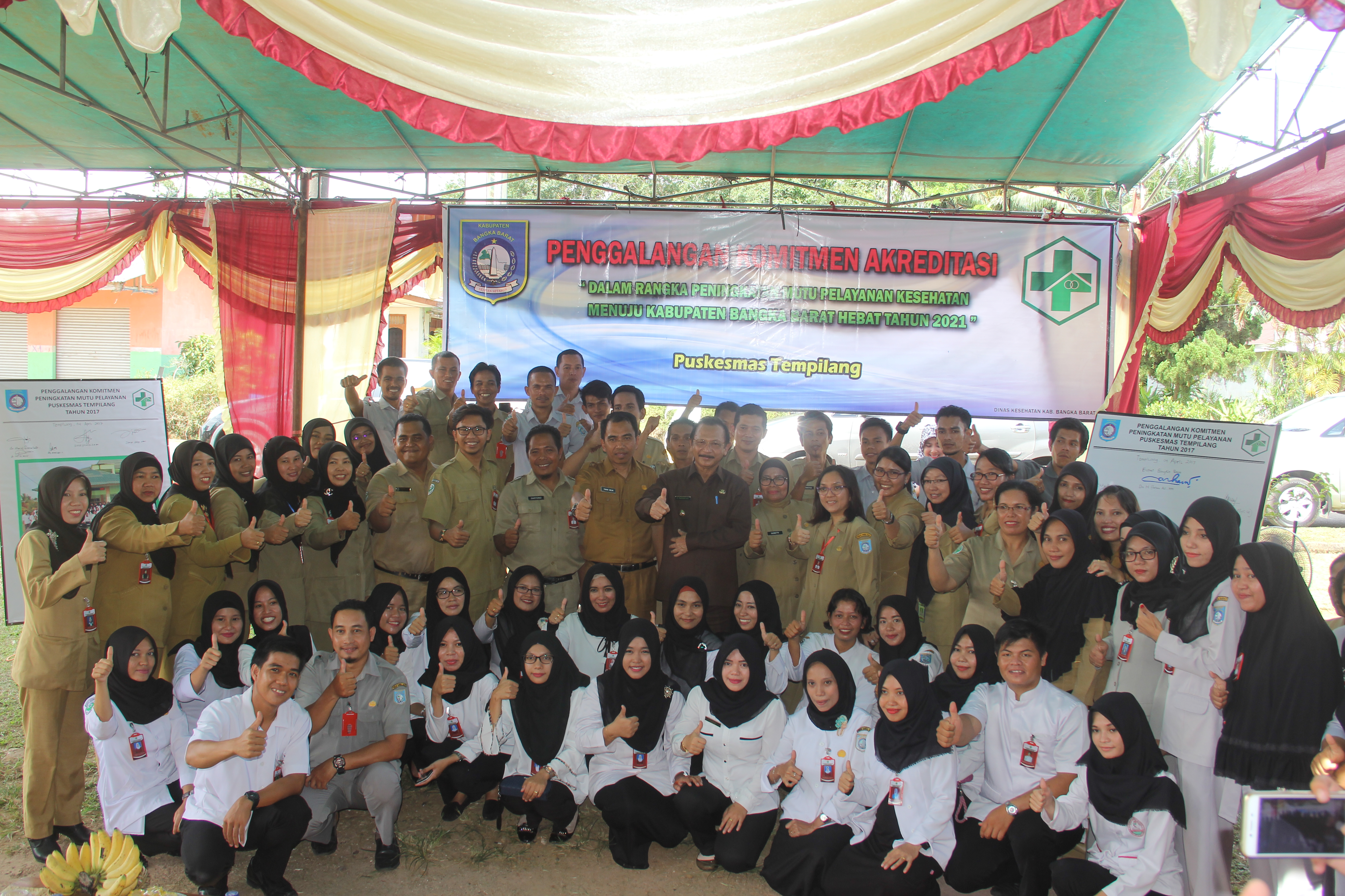 Selain bupati, hadir dalam penggalangan komitmen akreditasi ini, sekretaris Daerah, yunan helmi, plt dinkes Kasnetty, kepala opd, camat, danramil tempilang, kepala puskesmas se-kab bsngka Barat, serta seluruh tenaga medis di puskesmas tempilang.