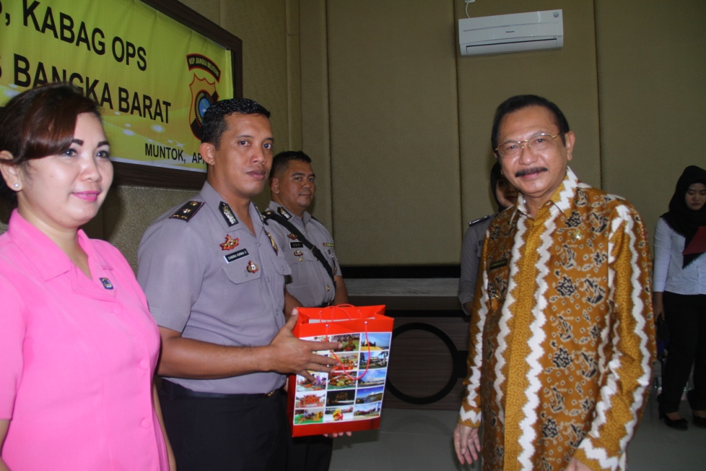 Bupati Parhan yang hadir didampingi oleh sekretaris Daerah, Yunan Helmi, dalam sambutannya mengucapkan ucapan terimakasih dan selamat datang kepada Wakapolres dan Kabag Ops Bangka Barat.