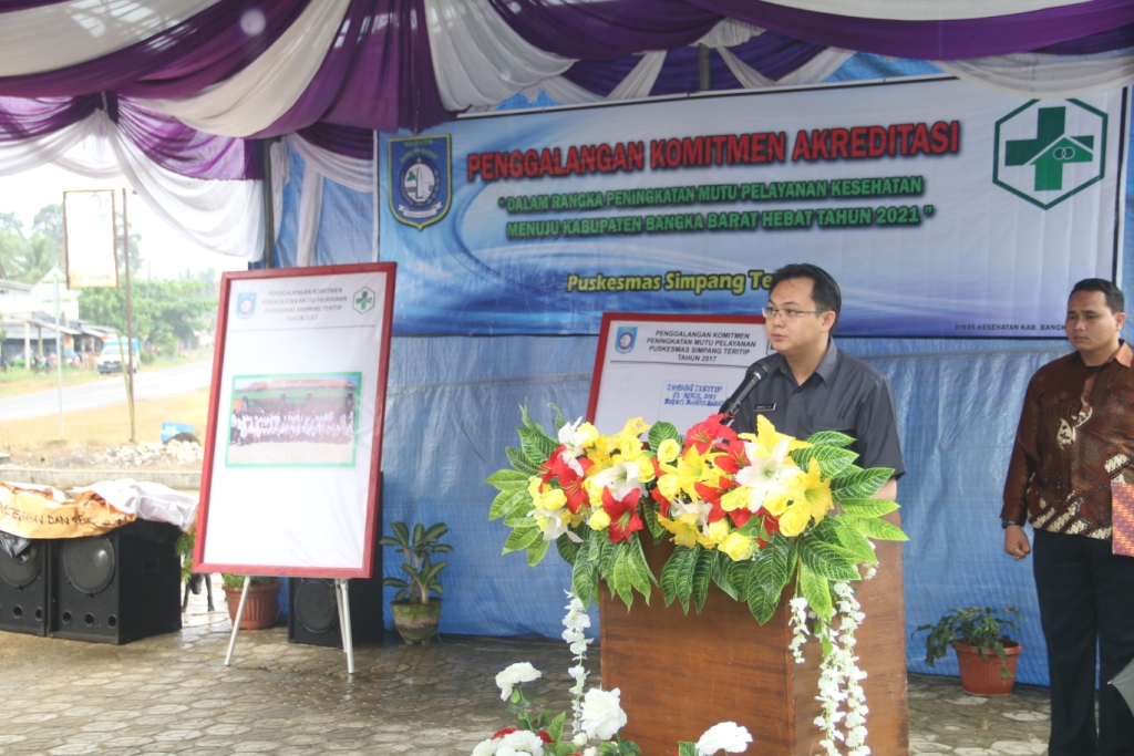 Puskesmas Simpang teritip melakukan penggalangan komitmen akreditasi. Komitmen tersebut ditandai dengan penandatanganan dan pengucapan ikrar yang dipimpin oleh wakil Bupati Bangka Barat, Markus, jumat (21/4) di puskesmas simpangteritip. Dalam sambutannya wakil Bupati mengajak seluruh elemen untuk turut serta mendukung proses akreditasi yang dicanangkan oleh Puskesmas Simpang Teritip.