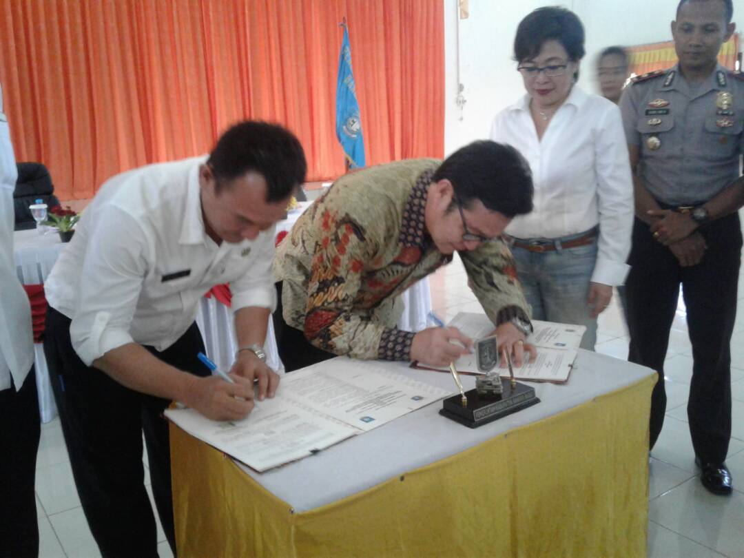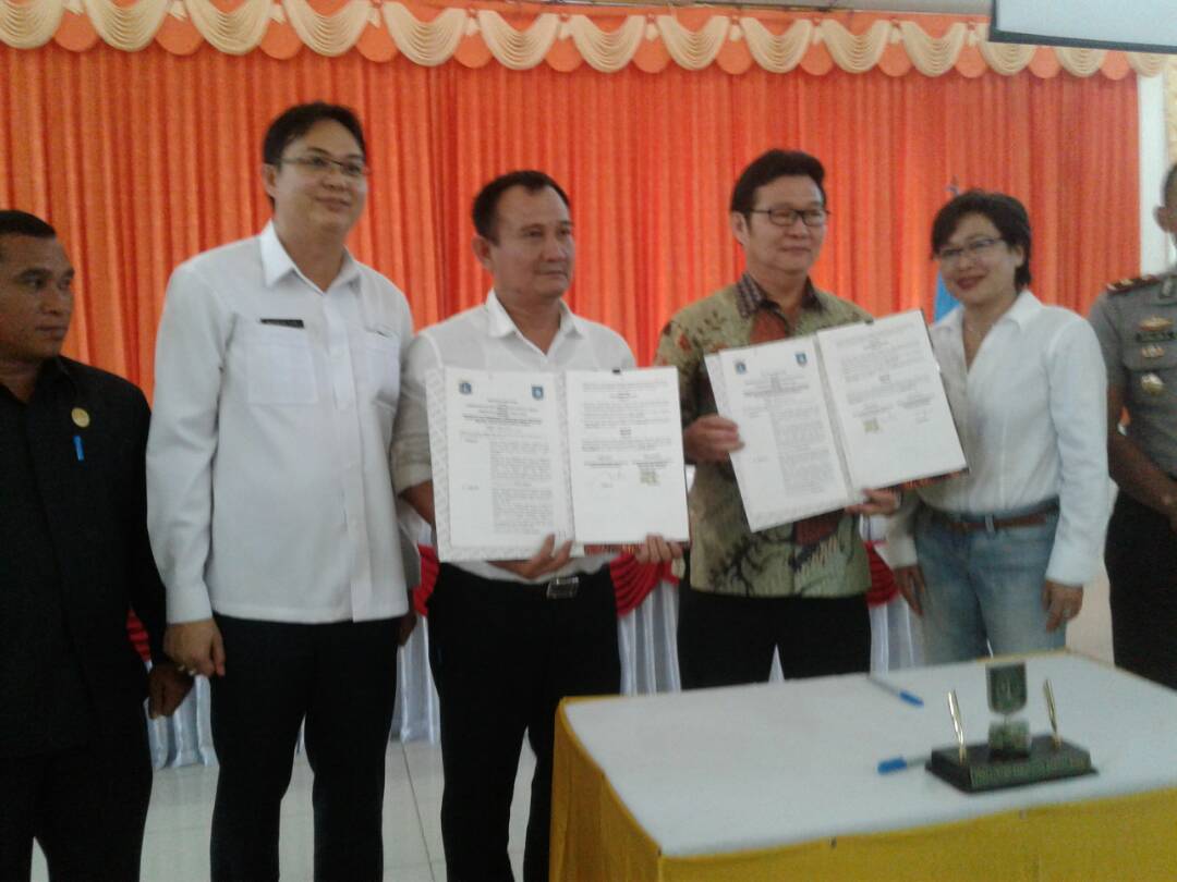 Muntok. Pemerintah Kabupaten Bangka Barat melaksanakan Penandatanganan Perjanjian Kerjasama Penggemukkan sapi dengan Pemerintah Propinsi Daerah Khusus Ibukota (DKI) di Gedung Aparatur Pemkab Bangka Barat Rabu (3-5-2017).