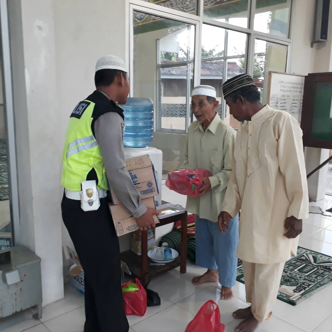 Satuan Lalu Lintas Polres Bangka Barat Membagikan takjil di masjid dan berbuka bersama jmaat masjid , kegiatan sosial dibulan Ramadhan menjelang berbuka puasa,senin 5 juni 2017