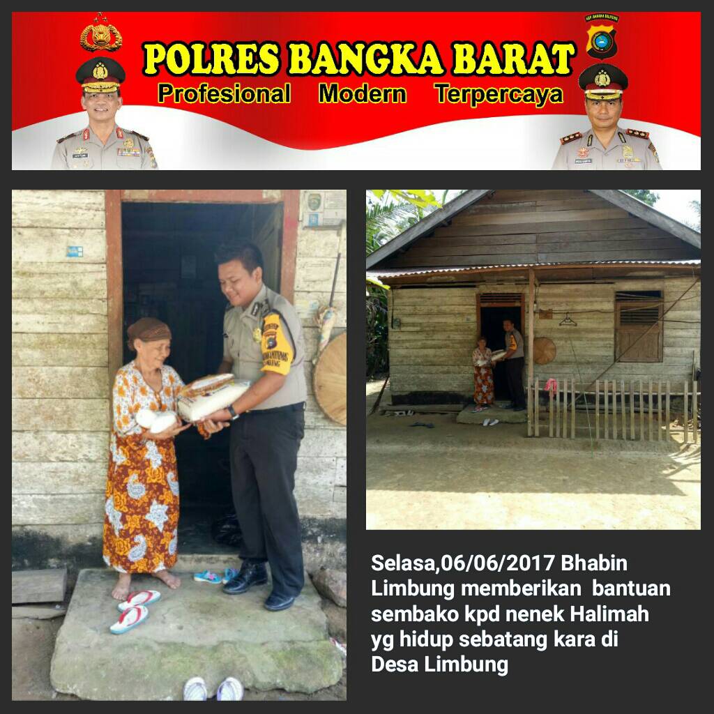 Bhabinkamtibmas Polsek Jebus yakni Aiptu Darmi, Bripka Putra dan Brigadir Riris memberikan bantuan kepada warga kurang mampu di desa binaan masing2.Dalam rangka bulan Ramadhan 1438 H ini, setiap orang berlomba-lomba untuk membuat amal jariyah. Termasuk anggota Kepolisian, dimana personel Bhabinkamtibmas yang bertugas di Desa Mislak, Desa Teluk Limau dan Desa Limbung memberikan bantuan berupa sembako. Bantuan sembako diberikan kepada warga yang uzur atau lansia.
