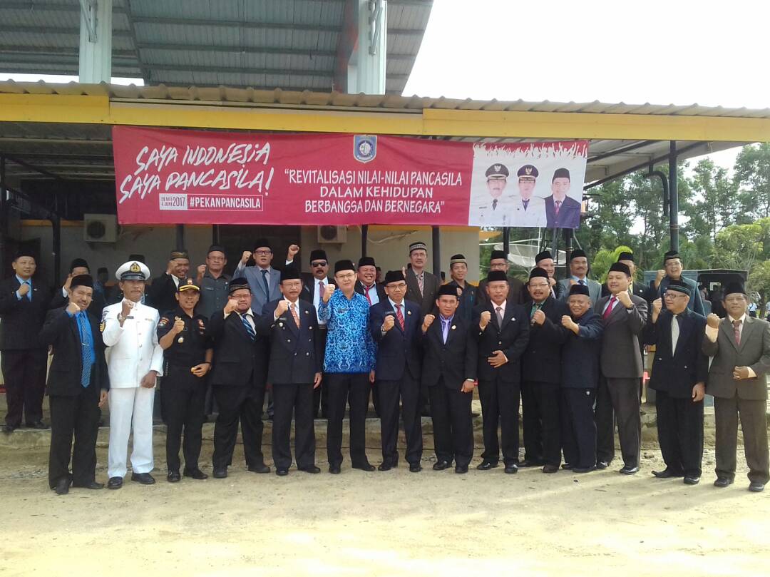 MUNTOK. Bupati Bangka Barat H.Parhan Ali memimpin jalannya upacara memperingati Hari Lahirnya Pancasila. Kegiatan dilaksanakan di lapangan atletik pemkab Bangka Barat,Jum’at (2-6-2017). tampak hadir dalam upacara Wakil Bupati Markus, Ketua DPRD Bangka Barat Hendra Kurniadi, Wk Ketua 1 DPRD Badri Syamsu, Sekda Yunan Helmi, Ka OPD, dan peserta upacara Polri, TNI, serta pegawai pemkab Bangka Barat.