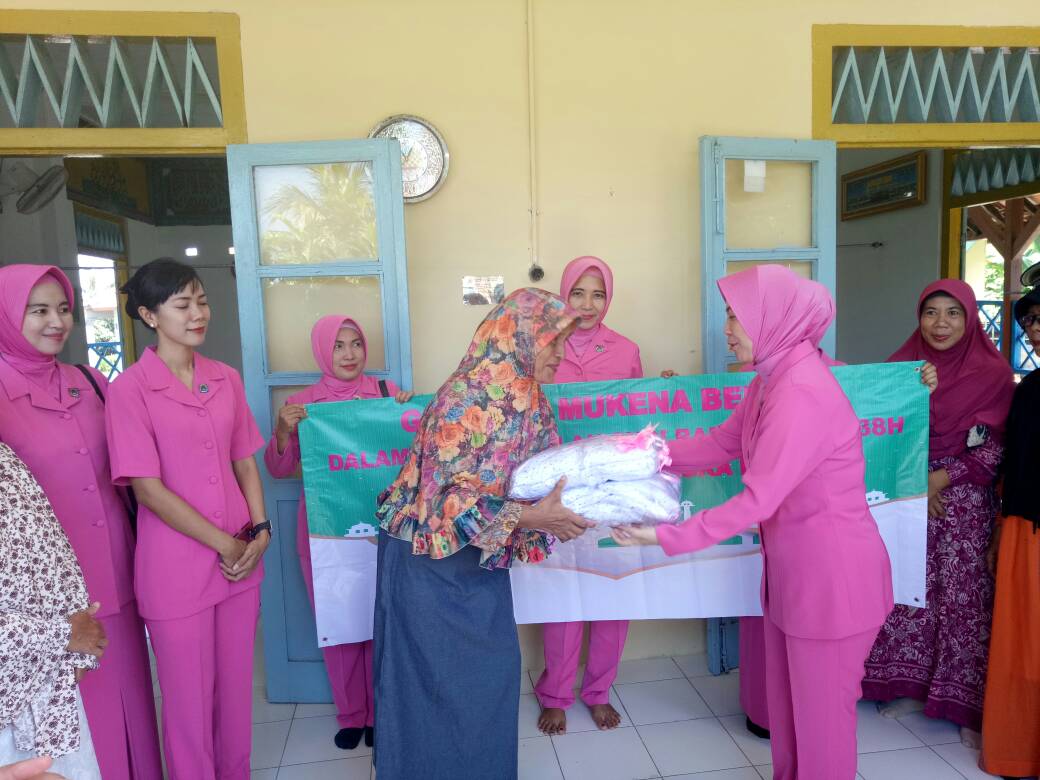 ” Mukena kita serahkan,dan apabila mukena tersebut sudah kotor maka kami akan ambil kembali untuk di bersikan sesudahnya kami serahkan lagi ke masjid yang sudah menerima mukena tersebut, mudah – mudahan mukena ini bermanfaat bagi masyarakat yang beribadah ” ujar Ny Eksi pengurus Bhayangkari seizin Ketua Cb.Bhayangkari