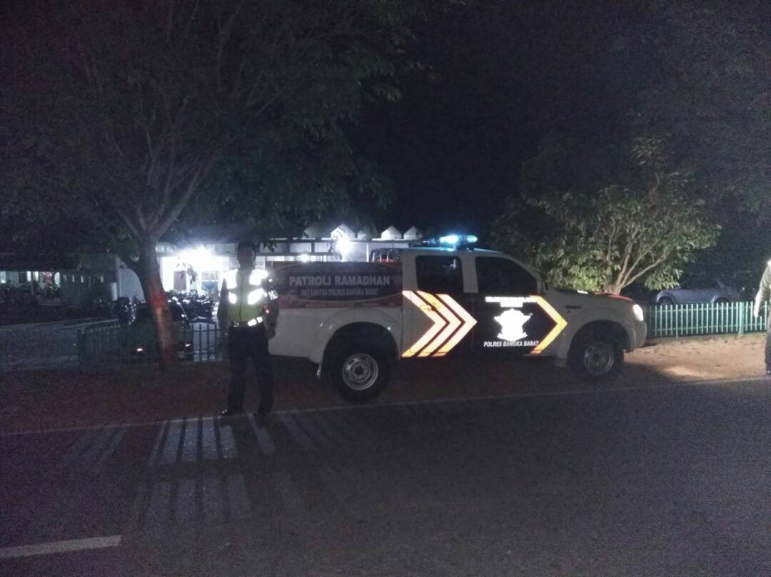 Humas Polres Babar —- Polres Bangka Barat kerahkan Personil Patroli dan pengamanan dalam kegiatan Sholat Tarawih, Jumat 16 Juni 2017 , Malam
