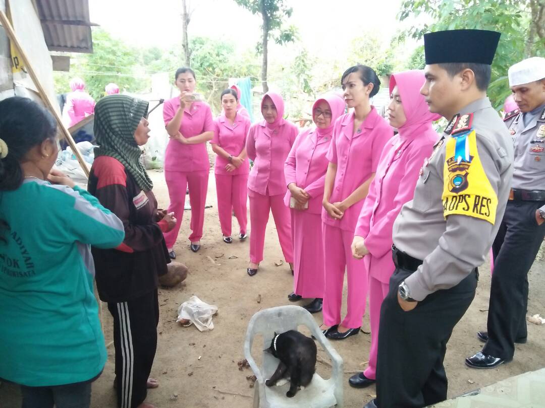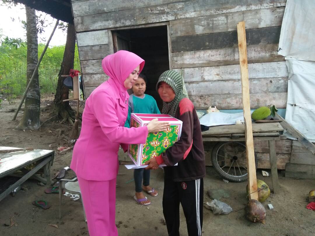 Humas Polres Babar —- Kapolres Bangka Barat AKBP Hendro Kusmayadi SIK MH di dampingi Ketua Bhayangkari Bangka Barat memberikan bantuan berupa sembako kepada warga yang kurang mampu, di Kecamatan Mentok,Senin 19 Juni 2017