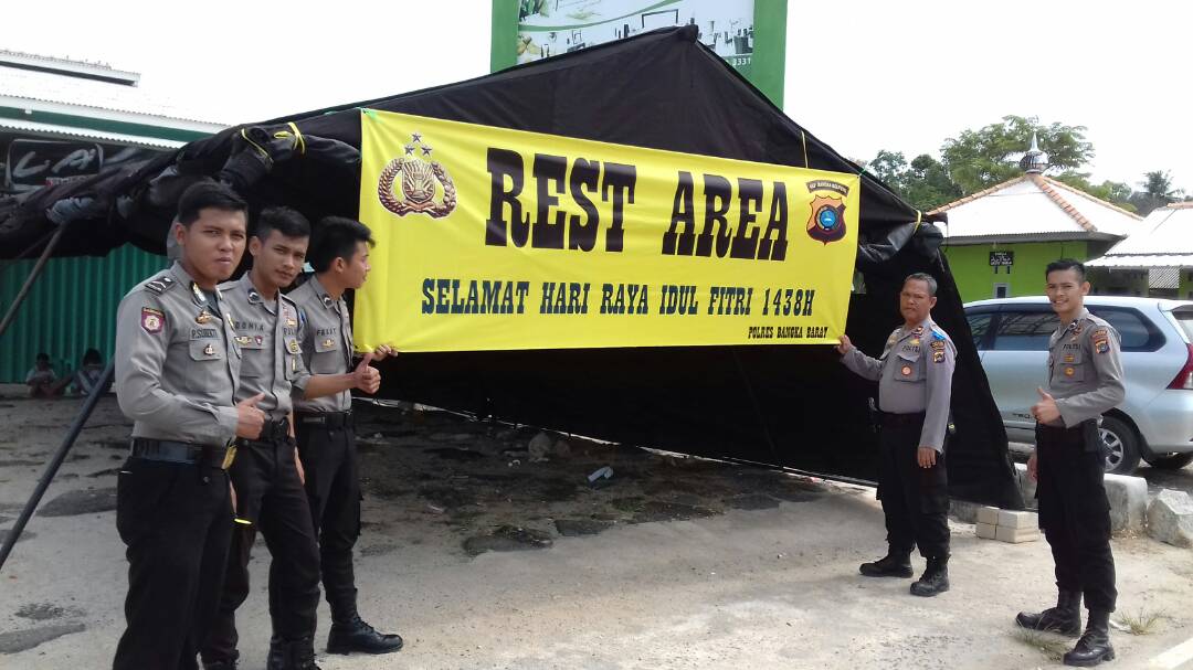 Humas Polres Babar—Polres Bangka Barat menyiapkan dua rest area atau tempat beristirahat sejenak untuk Para pemudik yang hendak menyebrang di pelabuhan Tanjung Kalian Mentok,