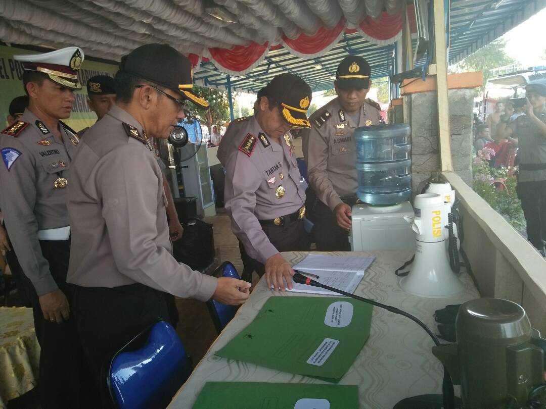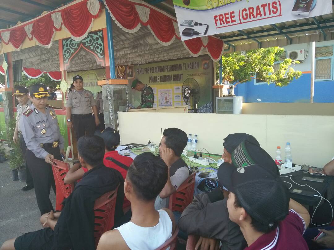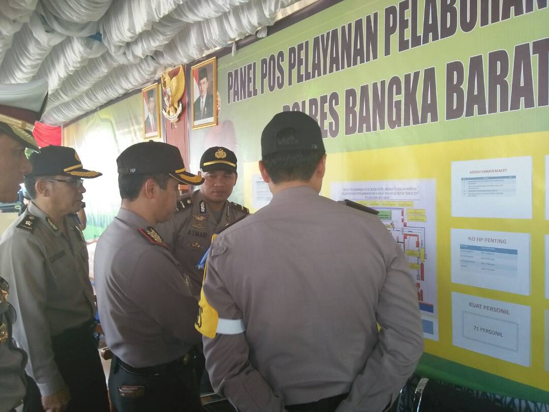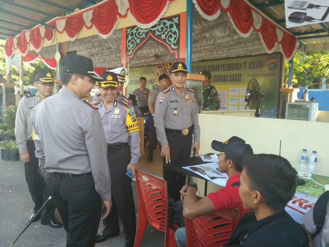 Wakapolda Babel Kombes Pol Tantan Sulistiana SH SIK, meninjau arus mudik di pelabuhan Tanjung Kalian Muntok, Kabupaten Bangka Barat, Rabu, (21/6/2017).