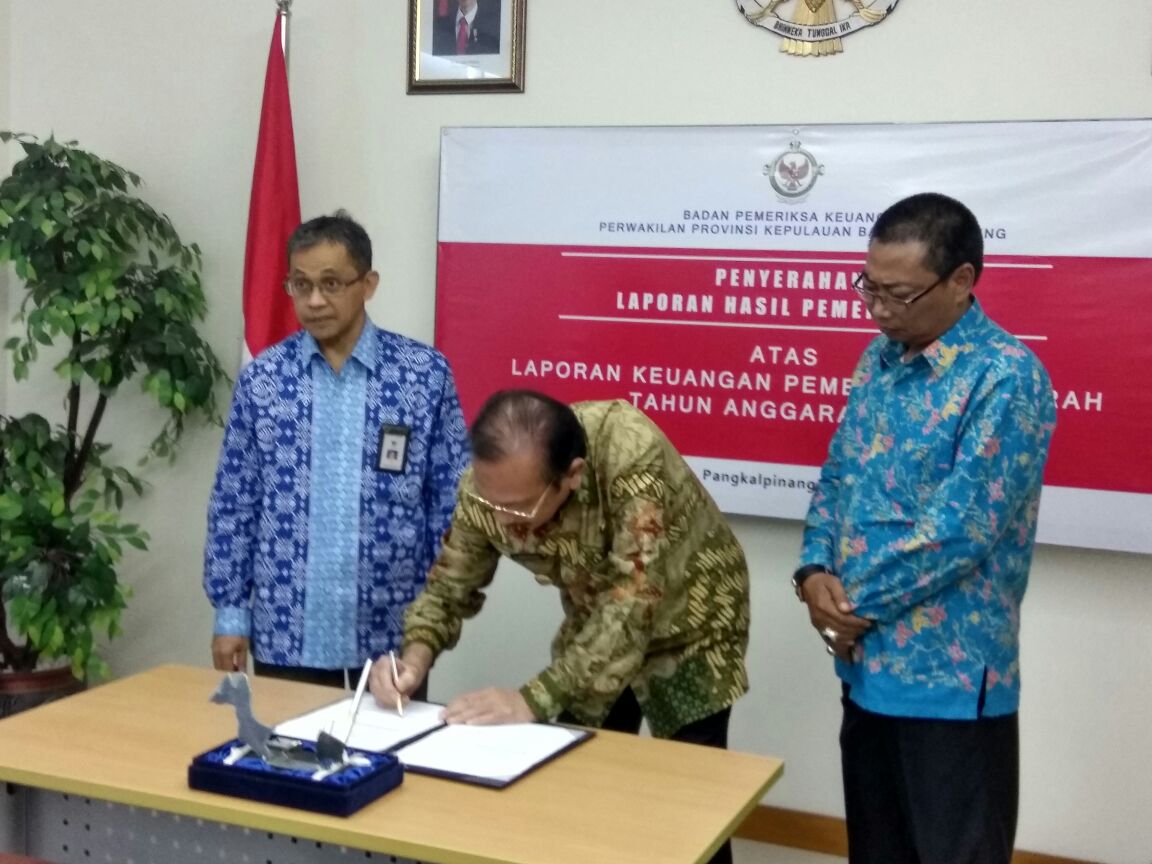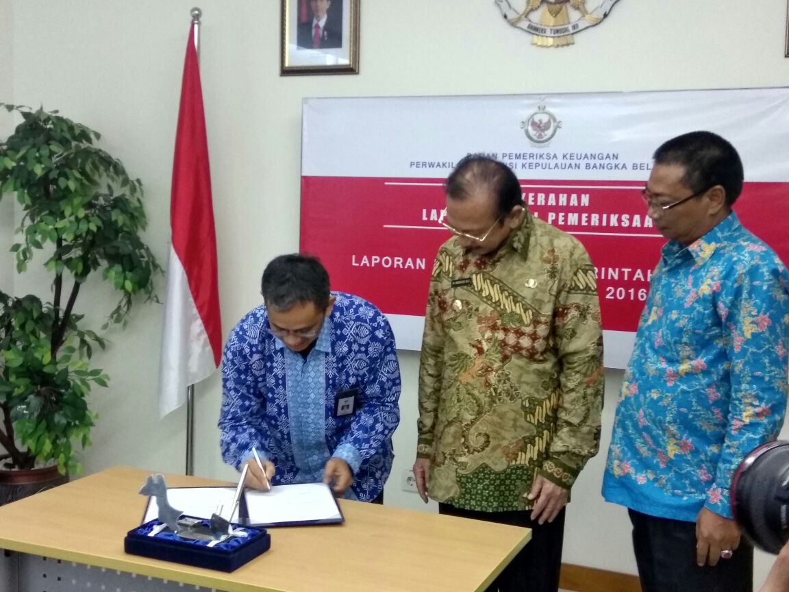 Penghargaan WTP di berikan oleh BPK kepada Pemerintah Bangka Barat berdasarkan atas laporan keuangan pemerintah daerah (LKPD) tahun 2016.