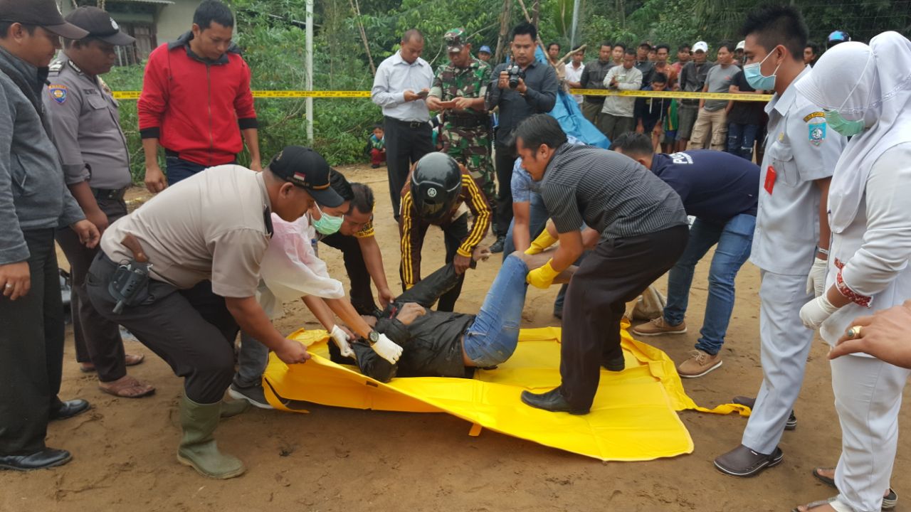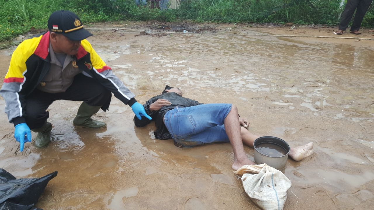 Menurut keterangan dari sdr.Yadi Sekira jam 06.30 wib sewaktu pulang dari ngantar anaknya sekolah di SD 10 dsn. kelekak kabung Ds.Benteng kota sdr.Yadi melihat ada org terbaring dilapangan volly,sdr.Yadi mengira org tsb pulang ngelimbang karena ada karung didekat badannya kemudian sdr.Yadi jln terus akan tetapi sdr.yadi masih merasa belum puas dan kemudian balik lagi untuk melihat org tsb,pas sdr.yadi lihat dari jalan org tsb tidak bergerak sama sekali setelah itu sdr.yadi melapor ke kadus 4 Tegek (marudin),setelah itu sdr.yadi bersama kadus dgn mengendarai sepeda motor sdr.yadi melihat dari jarak dekat org tsb setelah dilihat memang sudah tidak bergerak sama sekali dengan posisi agak telentang, ada karung dan mangkok cosmos untuk masak nasi yg berisi timah didekat kaki mayat tsb,