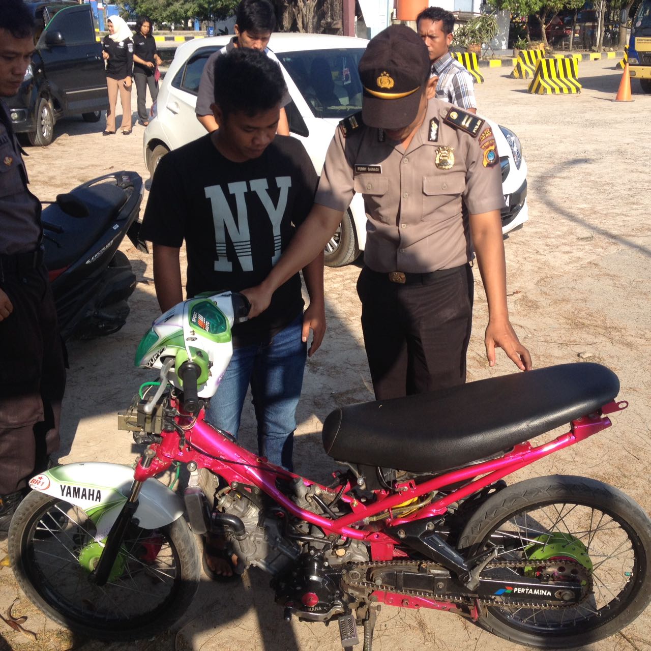 “Dalam razia ini didapat 2(dua) Unit sepeda Motor yg tidak dilengkapi surat – surat kendaraan serta menggunakan Kenalpon resing sehingga motor tersebut diamankan di Polsek Muntok ,adapun motor tersebut yaitu sepeda motor Jenis Yamaha Jupiter MX tanpa No.Pol dengan pemilik Gading warga Mentok Asin Kel.Tanjung Kec.Muntok dan sepeda motor Jenis Honda Supra X125 warna Hitam dengan No.Pol BN 7749 DT dengan pemilik Yusuf warga Pelabuhan barang Muntok Kel.Tanjung Kec.Muntok Kab.Babar dan motor tersebut diamankan ke Mako Polsek Muntok Res Babar serta diadakan pemeriksaan terbatas antisipasi adanya narkoba ataupun miras dan benda – benda berbahaya lainnya.
