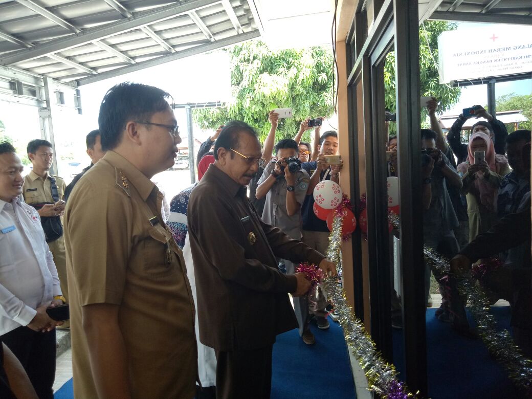 MUNTOK. Bupati Bangka Barat H Parhan Ali, meresmikan gedung dan markas Palang Merah Indonesia (PMI) di RSUD Sejiran Setason, Kabupaten Bangka Barat, Selasa (8/8/2017)
