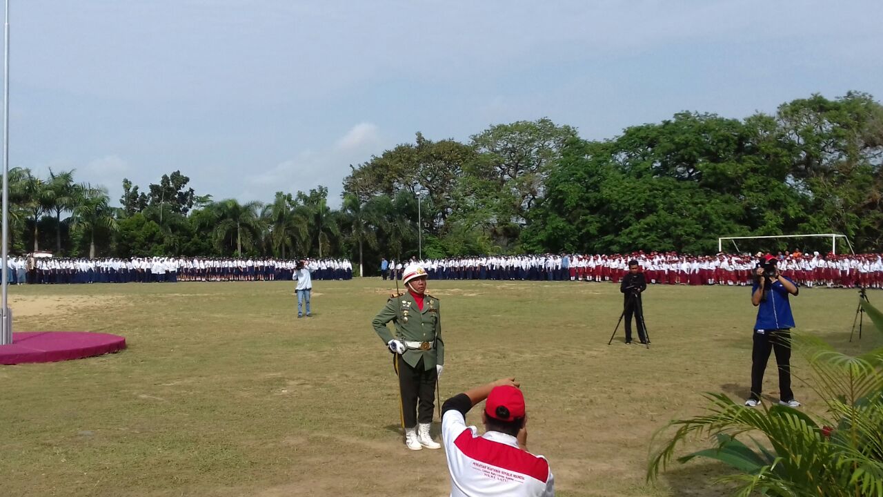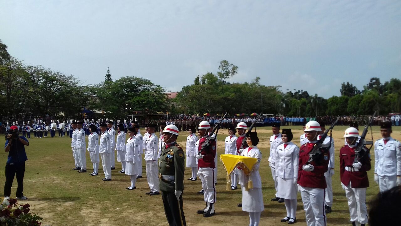 Derap langkah paskibraka memasuki lapangan upacara siap melaksanakan tugas mengibarkan bendera, beberapa putra putri terbaik Bangka barat yang terpilih yang merupakan siswa siswi SLTA se-kabupaten Bangka Barat yang mewakili sekolahnya.