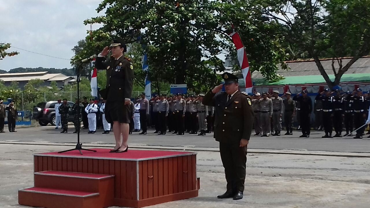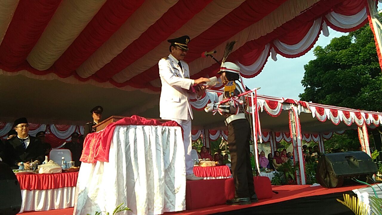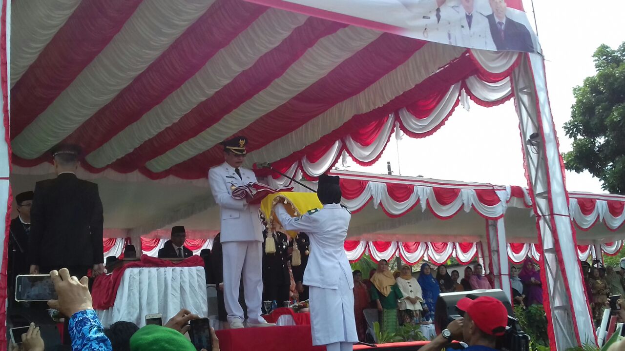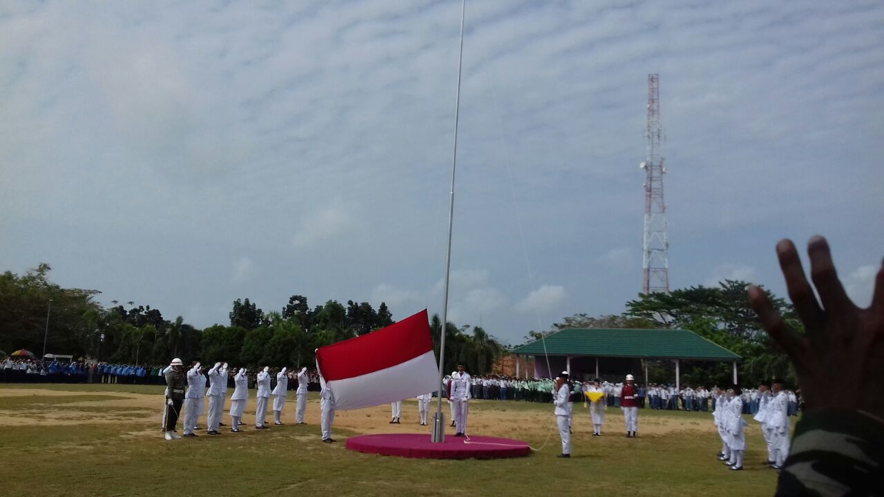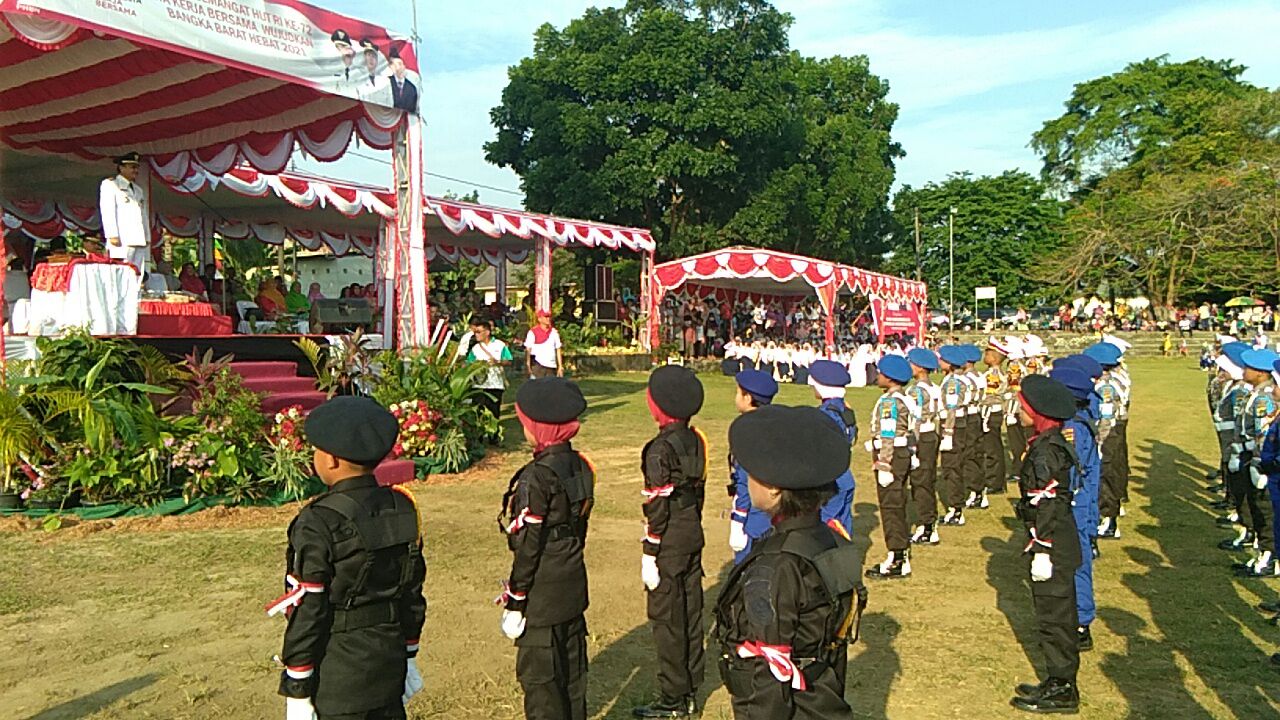 Sebagai Inspektur Upacara Bupati Bangka Barat H Parhan Ali memimpin jalannya upacara bendera. sekaligus memberikan bendera kepada petugas Paskibraka agar dapat dikibarkan membelah angkasa