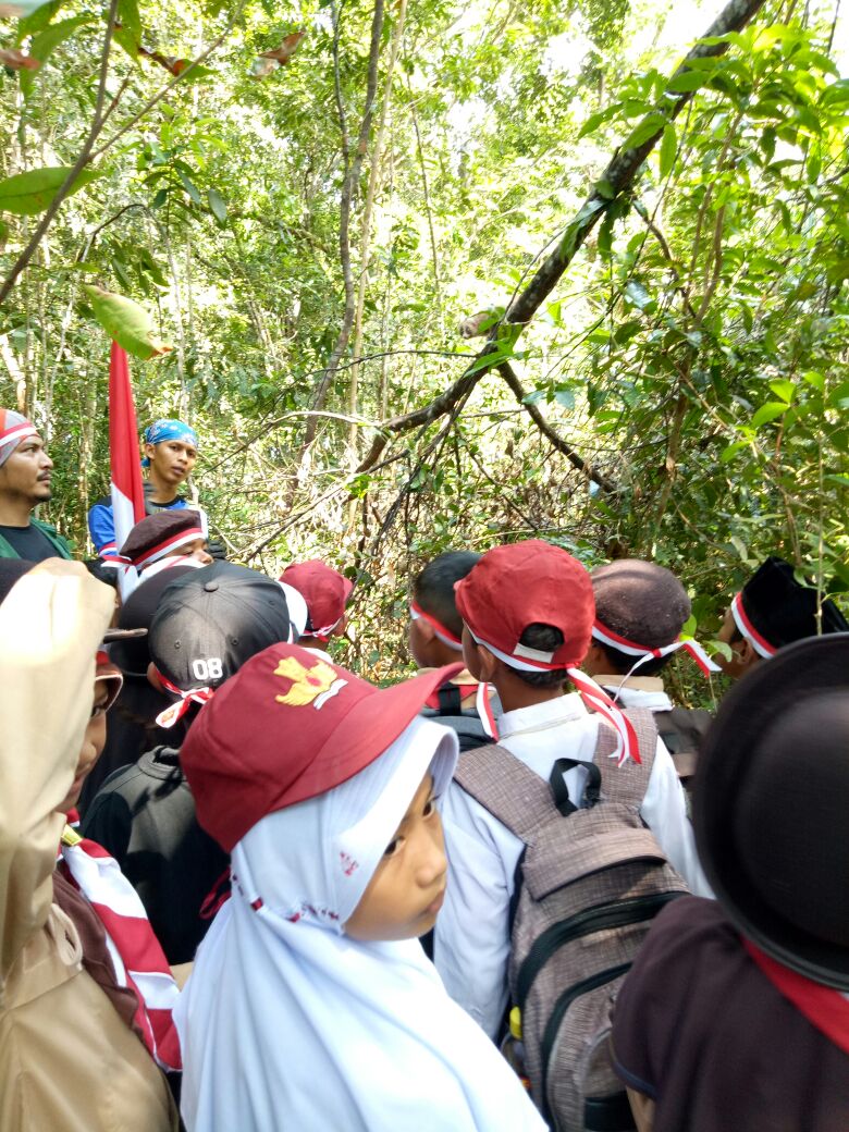 Sebelum melepas satwa di kolong Argotirto, Ketua FPM Hermansyah memberi siswa SD pemahaman mengenai bukit Menumbing yang terus dijarah penambang timah ilegal. Banyak pohon yang tumbang, air sungai menjadi keruh dan satwa liar banyak punah. Selain itu pihaknya kengibarkan spanduk merah putih ukuran 6×6 meter di atas menumbing.”Menumbing ini paru-parunya kota Muntok jadi adek-adek harus menjaganya,”ujarnya.