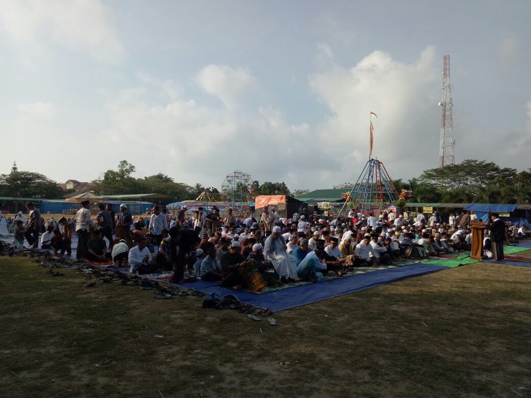 Khatib Sholat Idul Adha Muchlisin Malik dalam khutbahnya menyampaikan hendaknya kaum muslimin mencontoh sikap keteladan nabi Ibrahim AS yang rela berkorban demi perintah Allah.