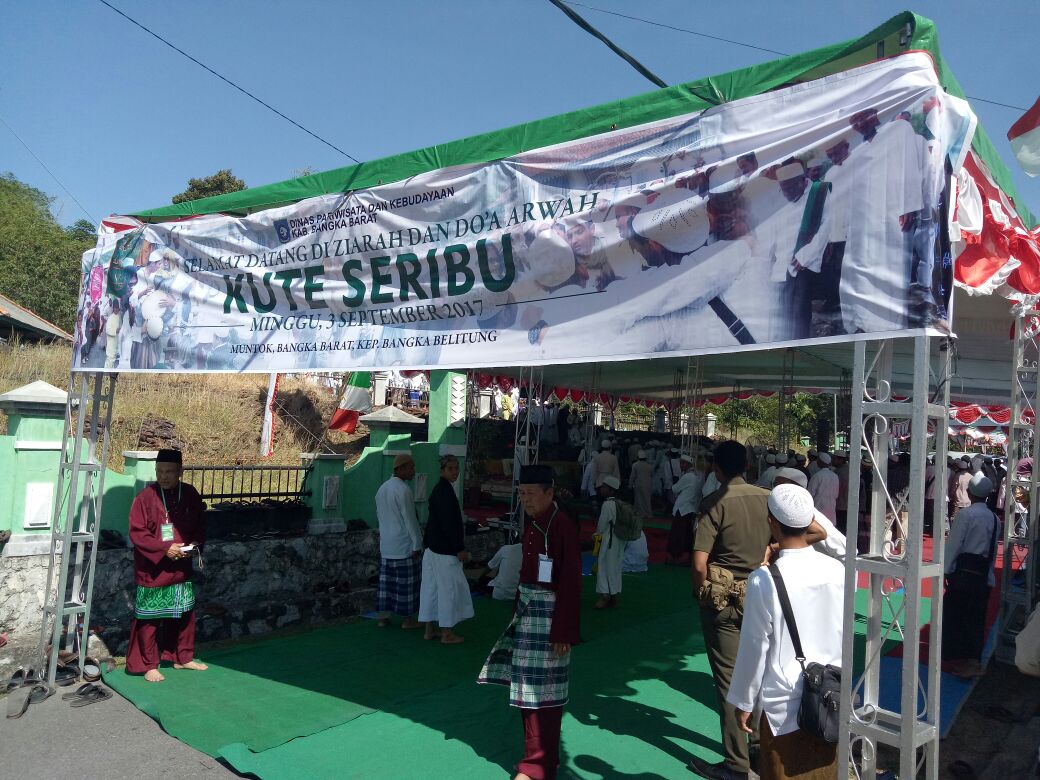 MUNTOk. Ratusan kaum muslimin,berkumpul melaksanakan Ziarah & doa arwah kuteseribu. Acara merupakan agenda tahunan yang dilaksanakan setiap tahun itu,dipusatkan di pemakaman kuteseribu, KpTanjung Muntok Minggu (3-9-2017) hadir dalam kegiatan tsb Bupati Bangka Barat H Parhan asisten 1 bidang pemerintahan pemprov Bangka Belitung Haryoso, KapolsekMuntok, Danramil Muntok, OPD, Camat,ulama,dan ratusan kau kaum muslimin yang datang ke pemakaman kuteseribu