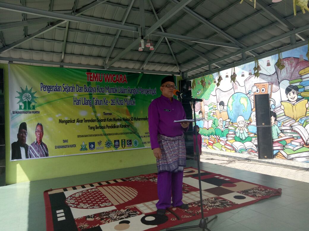 MUNTOK. Dalam rangka memperingati HUT Kota Muntok ke 283, SD Muhamadiyah Muntok bekerjasama dengan Bank Syariah Bangka Belitung Capem Muntok melaksanakan Temu Wicara, Pengenalan Sejarah dan Budaya Kota Muntok dengan tema: Mengangkat Akar Terendam Sejarah Kota Muntok. Acara dilaksanakan di SD Muhadiyah Muntok Kamis (7-9-2017).