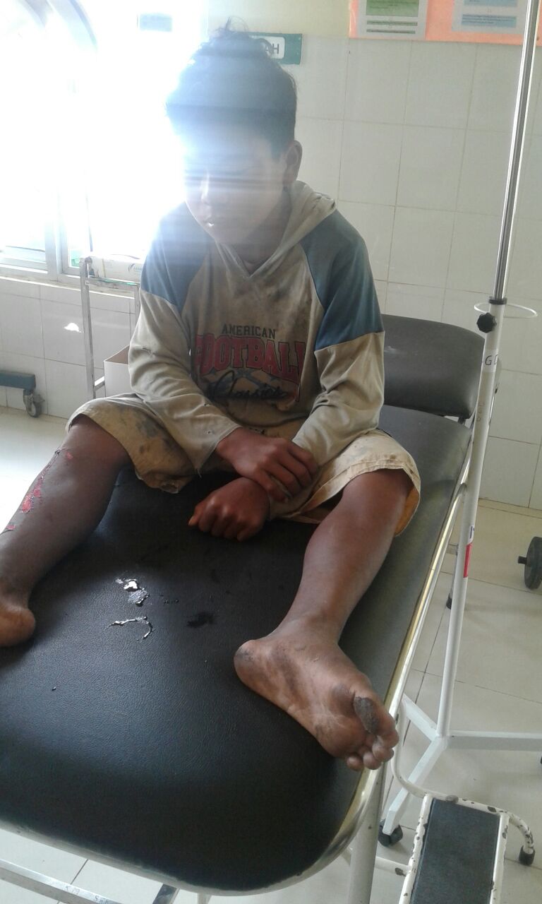 Korban bernama Sabda(14) beralamat di Dusun Jebu Darat mengendarai sepeda motor Honda Beat warna putih merah jambu dengan plat BG 6648 DAB melaju dari arah Jebu Darat menuju Parit Tiga. Setiba di TKP korban dikagetkan dengan keberadaan kendaraan mobil Suzuki Carry warna hitam dengan plat B 9227 FAH dikendarai oleh Sdr.Bagiyono yang sedang menolong Sdr.Lancele karena mengalami laka tunggal dengan sepeda motor Yamaha Mio warna hijau.