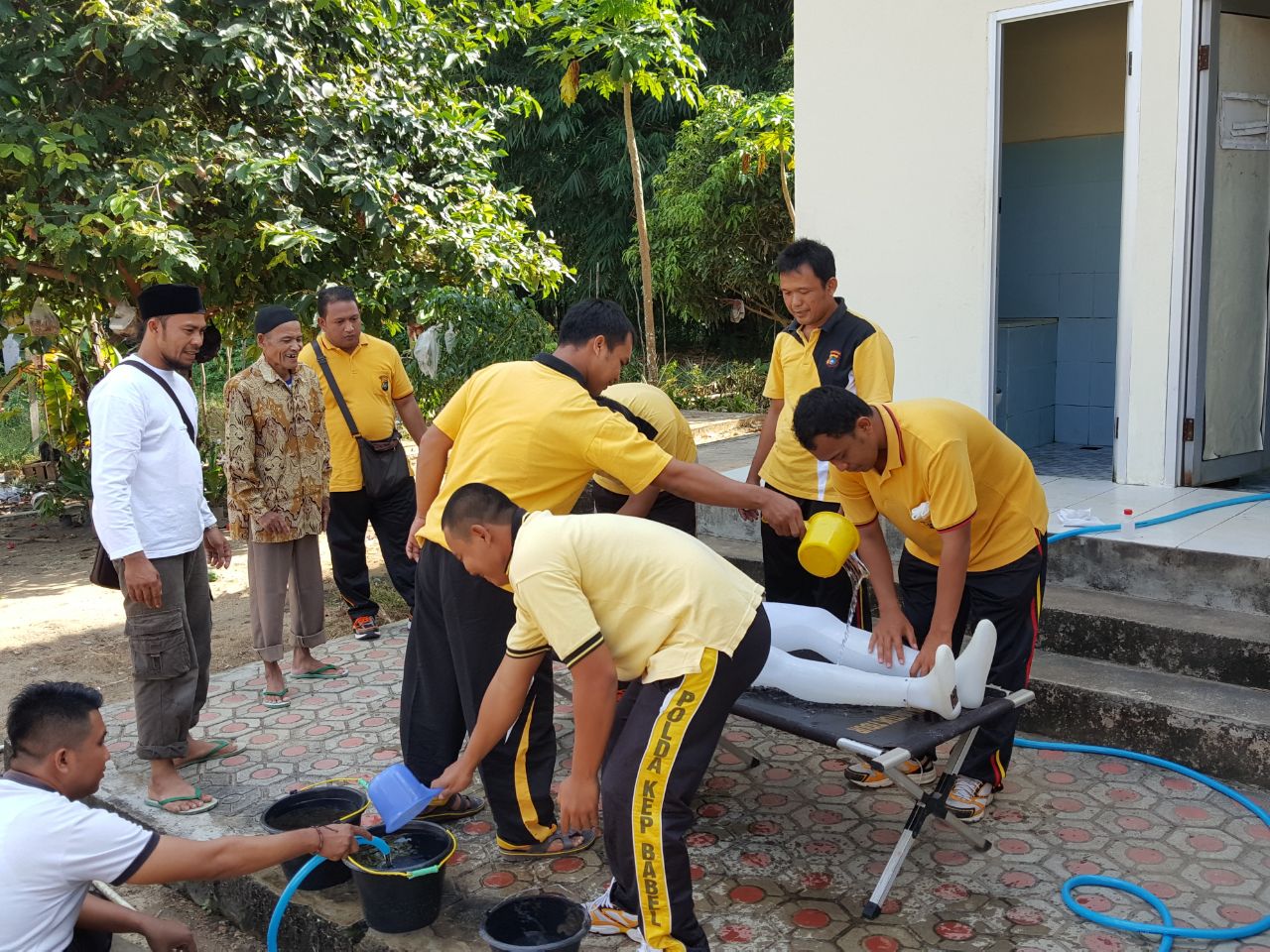 Humas Polres Babar – Polsek Simpang Teritip melaksanakan kegiatan pembinaan rohani dan bental berupa tata cara memandikan jenazah di Polsek Sp.Teritip, Kamis,15 September 2017 pukul 09.00 wib