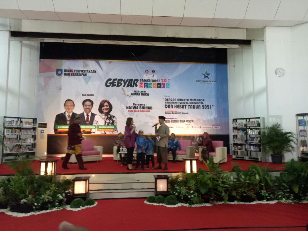 Najwa mengatakan minat baca harus ditumbuhkan di lingkungan keluarga dan sekolah. Ia juga kagum dengan inisiator-inisiator minat baca di Bangka Barat.