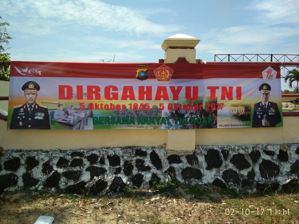 Pemasangan spanduk Hari Ulang Tahun TNI ke 72 yang jatuh pada tanggal 05 Oktober ini dipasang di setiap sudut kota Muntok yang sering dilewati oleh masyarakat. Tidak hanya di Muntok, spanduk HUT TNI juga dipasang di setiap polsek jajaran Polres Bangka Barat.