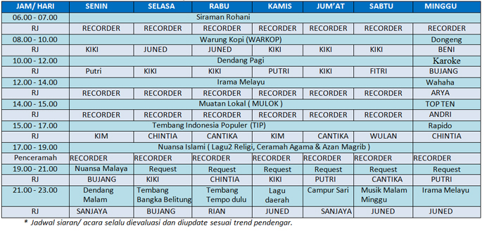 JADWAL SIARAN RADIO PILAR 102.1 FM