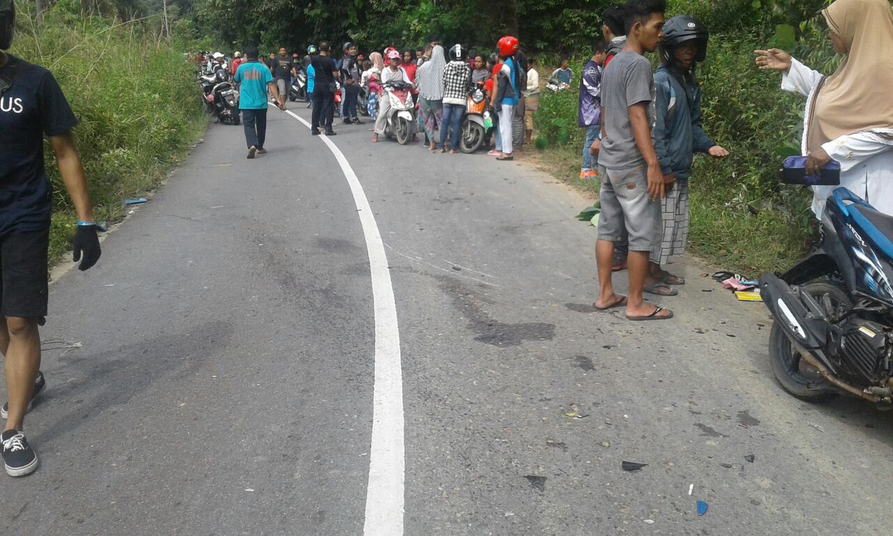 Sepeda motor yang dikendarai korban melaju dari arah Desa Cupat menuju kearah Parittiga lalu mengalami lakalantas dengan sepeda motor Yamaha Aerox warna hitam tanpa nopol yang dikendarai oleh Agus(45) yang melaju dari arah berlawanan yaitu dari arah parit tiga menuju desa cupat.