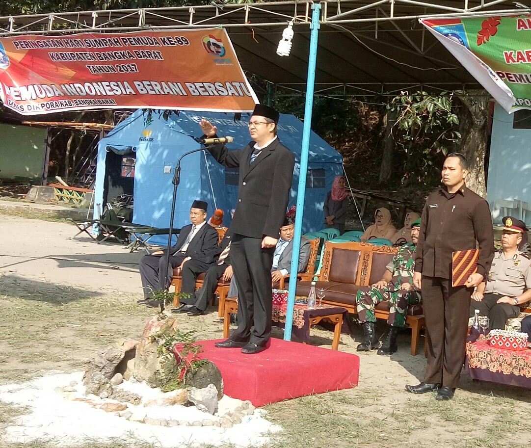 Muntok. Wakil Bupati Markus SH mengajak pemuda di Bangka Barat menjadikan peringatan sumpah pemuda ke 89 dapat menjaga.persatuan dan kesatuan NKRI, menurutnya tokoh pemuda tahun 1928 yang telah berikrar satu Indonesia hendaknya dijadikan tauladan bagi generasi saat ini. Demikian disampaikannya saat diwawancara oleh sejumlah wartawan usai menjadi inspektur upacara pada peringatan hari Sumpah Pemuda di pantai Batu Rakit, Sabtu (28-10-2017).