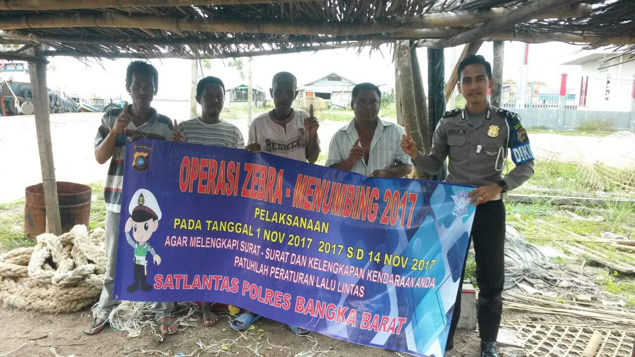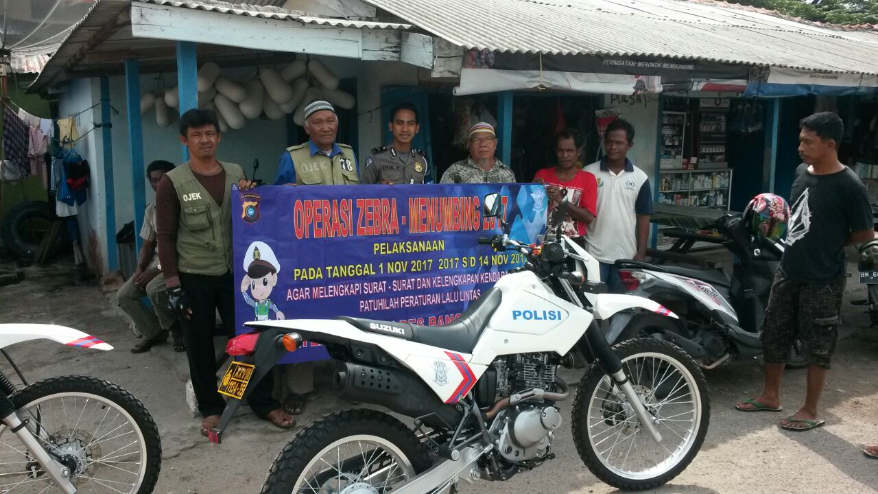 Satgas Preemtif Ops Zebra Menumbing Polres Bangka Barat mengunjungi Pangkalan Ojek di pelabuhan Muntok, Senin, 06 November 2017.