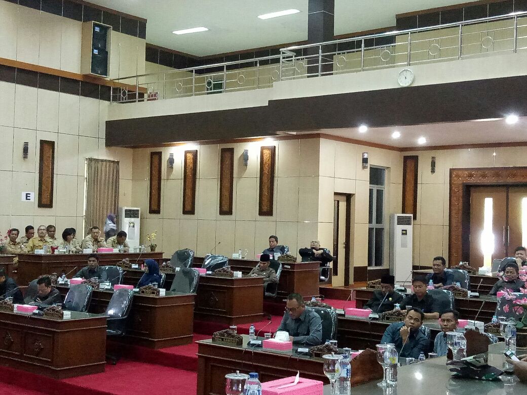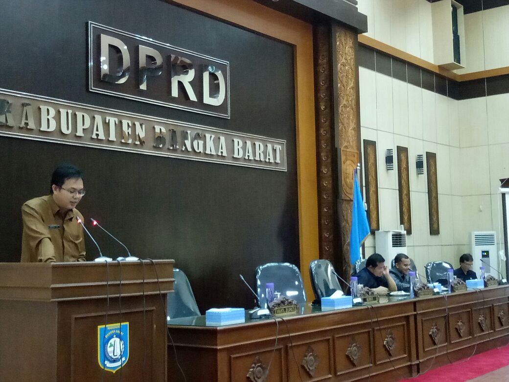 Rapat Paripurna Dewan, mendengarkan Penyampaian Wakil Bupati Bangka Barat, Markus, S.H menyampaikan 2 rancangan peraturan daerah komulatif terbuka yang meliputi Raperda Tentang Retribusi pelayanan tera/tera ulang dan Raperda tentang perubahan atas peraturan daerah nomor 6 tahun 2016 tentang pembentukan dan susunan perangkat daerah kabupaten Bangka Barat.