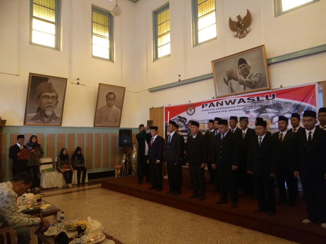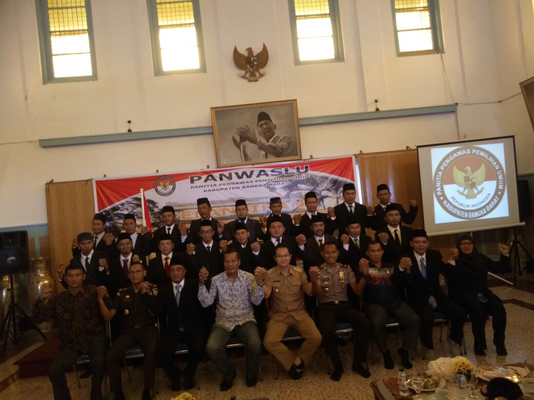 Muntok. Panitia pengawas Pemilu (PANWASLU) Kabupaten melantik 18 pengawas Pengawas Pemilu Kecamatan (PANWASCAM) se-Bangka Barat. Acara pelantikan dihadiri oleh Wakil Bupati Markus SH, Komisioner Bawaslu Propinsi Firman TB Pardede, Wakapolres Siswo Dwi Nugroho,Komisioner KPU Harpandi, Wakil Ketua I DPRD Badri Syamsu,dan Kasie Pidana Umum Hendra SH MH