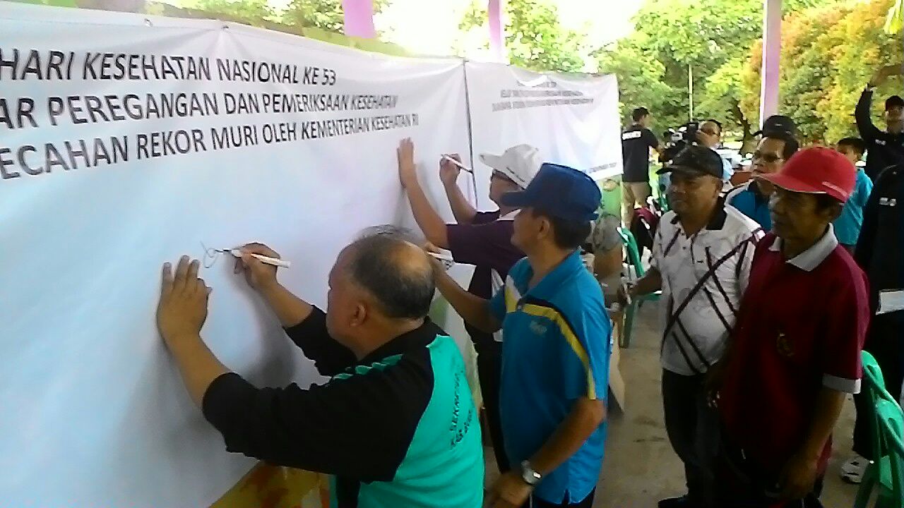 Acara ditandai dengan penandatanganan dukungan program GERMAS dan pemecahan Rekor MURI oleh Kementrian Kesehatan RI oleh peserta yang hadir mengikuti senam.sehat bugar peringatan hari kesehatan RI ke 53 dan pemeriksaan dini deteksi penyakit oleh Dinas Kesehatan Bangka Barat.