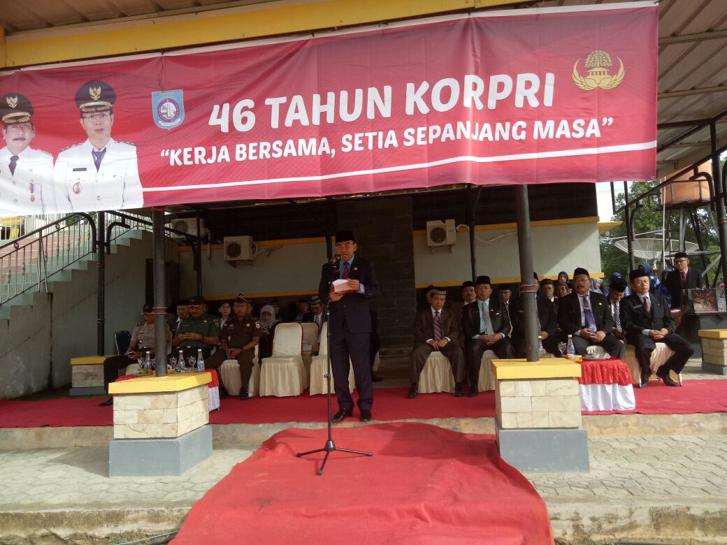 Muntok. Bupati Bangka Barat Drs H Parhan Ali MM, memimpin jalannya upacara bendera peringatan HUT KORPRI dan PGRI. Acara dilaksanakan di lapangan atletik Pemkab Bangka Barat Rabu (29-11-2017)