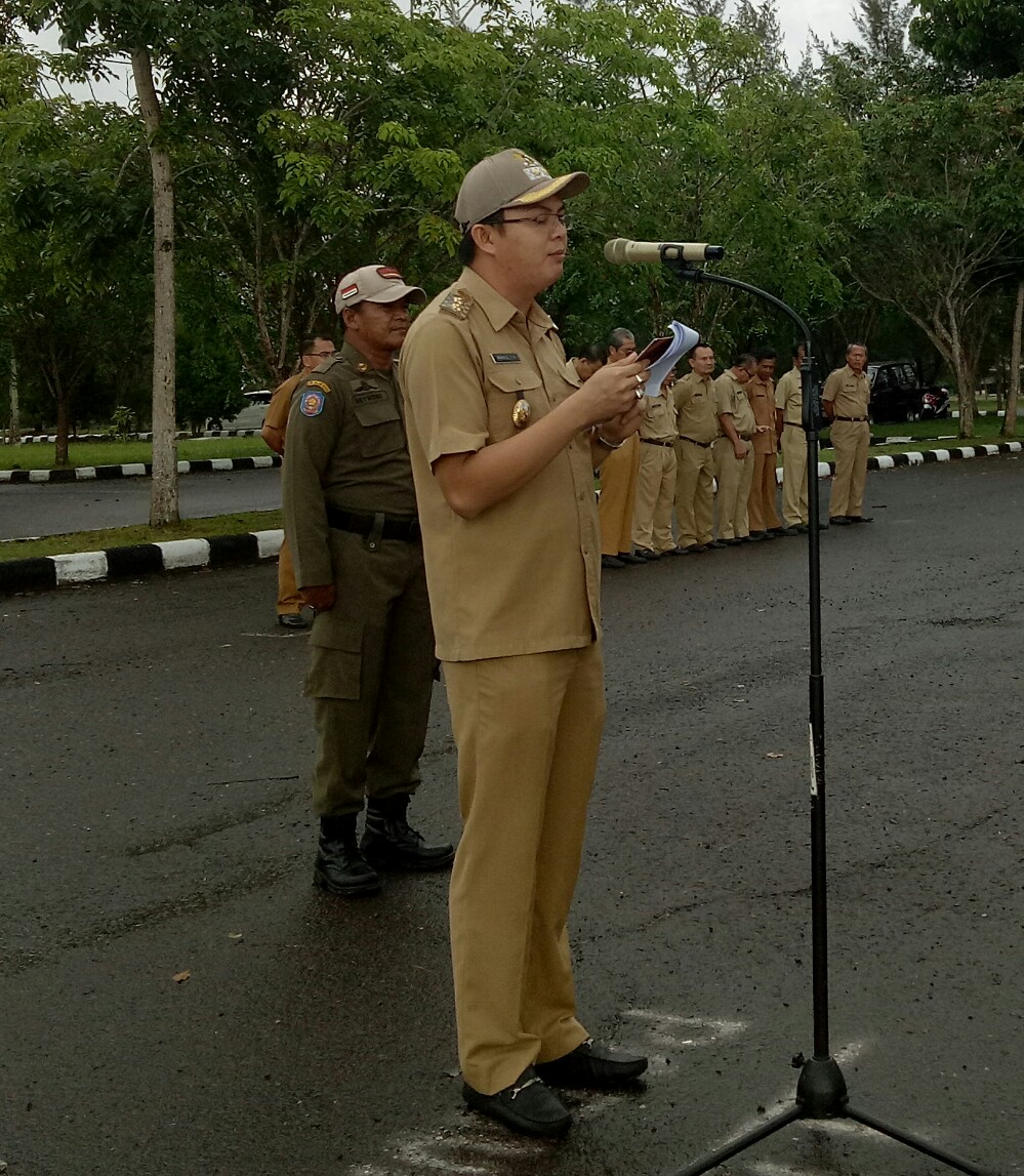 Muntok. Wakil bupati Bangka Barat Markus SH memimpin jalannya apel bela negara. Apel dilaksanakan di lapangan parkir timur kantor pemkab Bangka Barat diikuti oleh pegawai pemkab Bangka Barat, hadir dalam apel Sekda Yunan Helmi, Asisten, Ka OPD pemkab Bangka Barat. Selasa (19-12-2017)