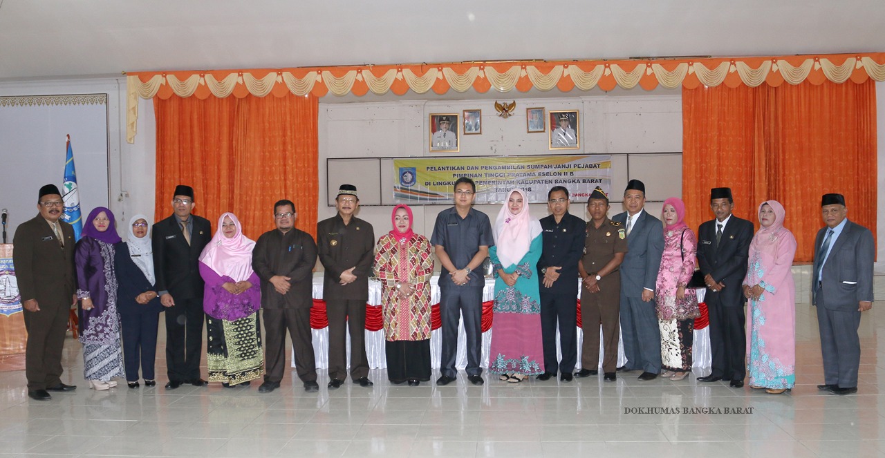 Pemerintah kabupaten Bangka Barat laksanakan pelantikan dan pengambilan sumpah jabatan pimpinan tertinggi pratama eselon II B pada hari ini, Rabu (10/1) di Graha Aparatur Bangka Barat.