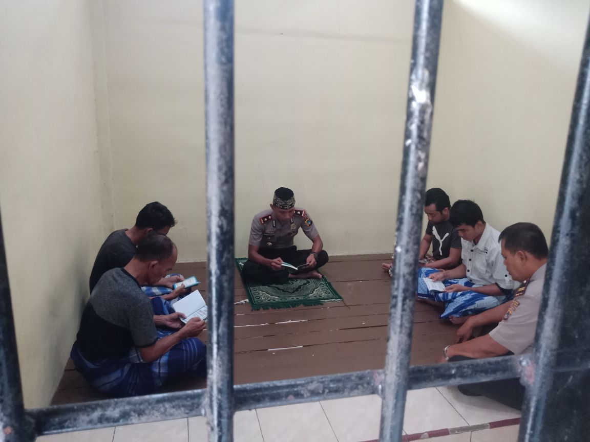 Dalam kegiatan tersebut, Wakapolres didampingi Kasat Tahti Iptu Purwo dan bertempat di dalam sel tahanan Polres Bangka Barat mengajak tahanan untuk membaca Yassin dan memberikan kultum untuk kembali menyegarkan rohani dan mental.