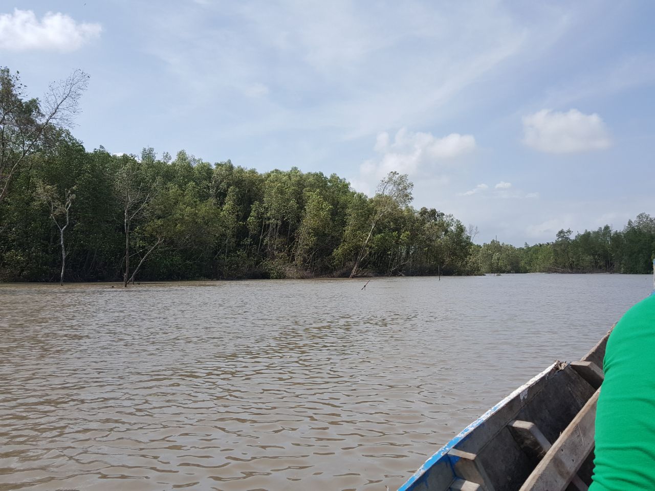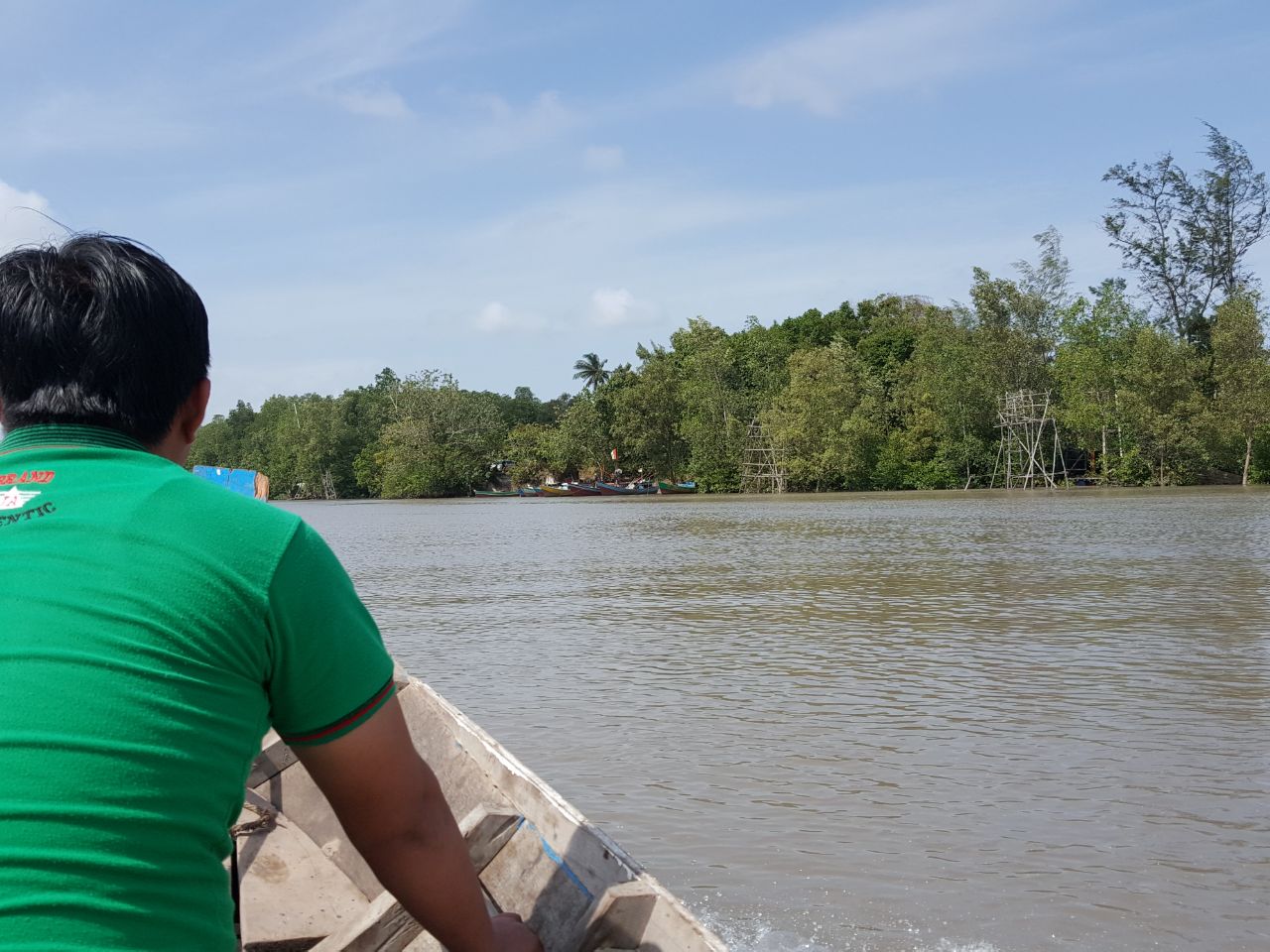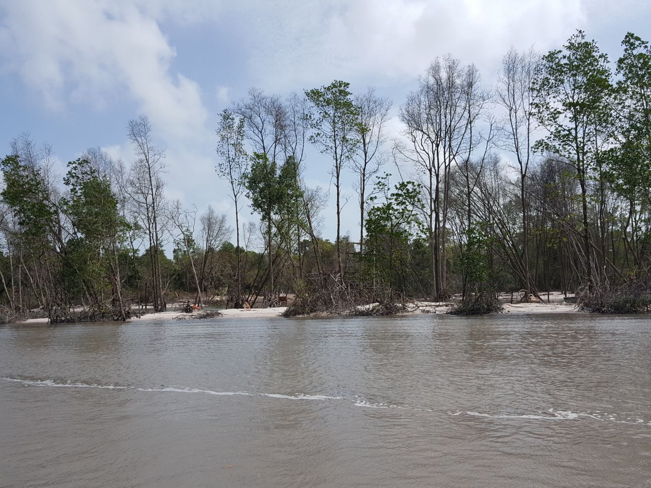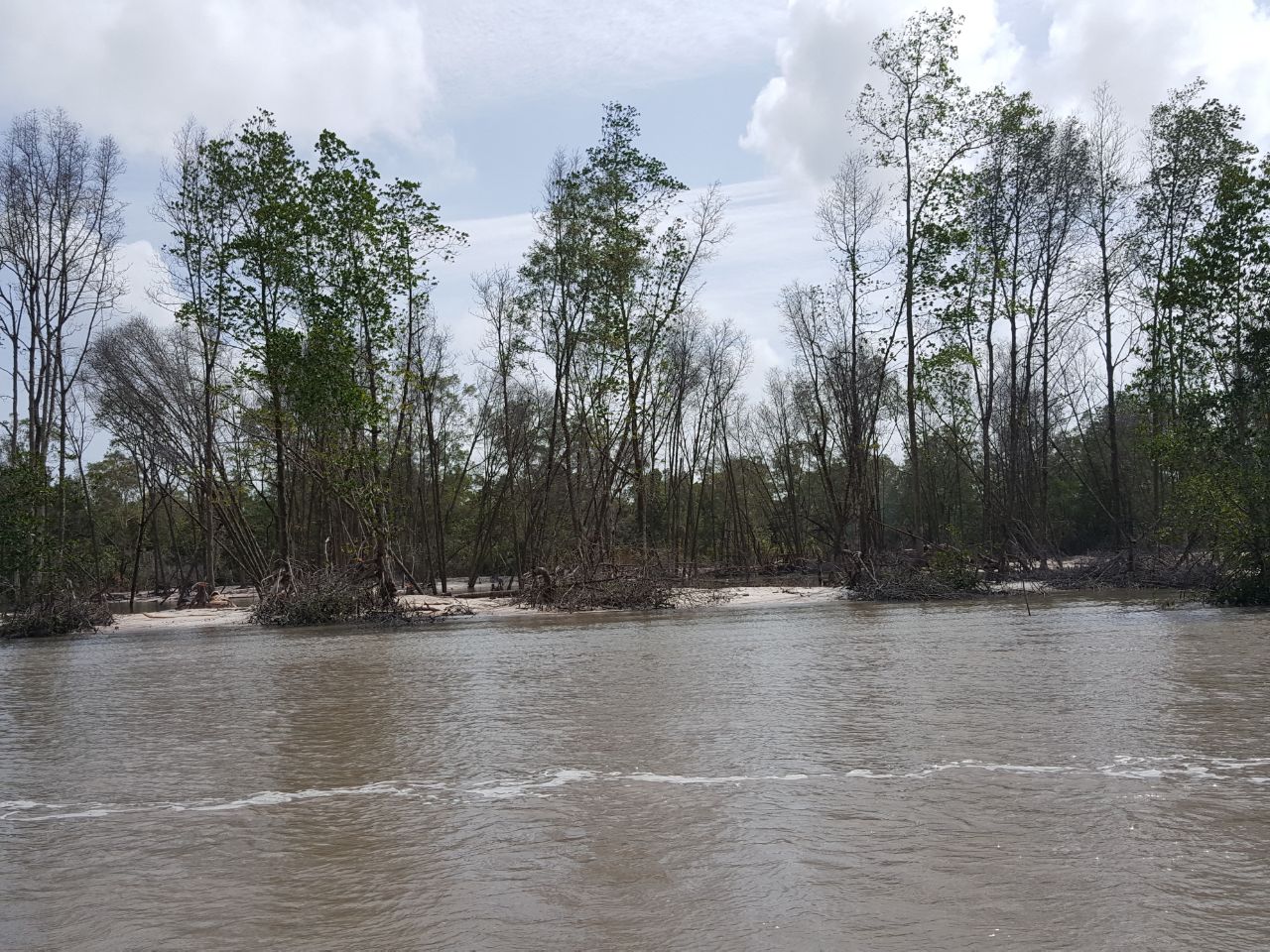Meninjau perkembangan situasi dan kondisi aktivitas penambangan di Desa Rambat, Kapolsek Simpang Teritip Ipda Kukuh Feriyanto menyisiri DAS (Daerah Aliran Sungai) dan Hutan Lindung Mangrove di perairan Sungai Rambat, Senin 05 Februari 2018.