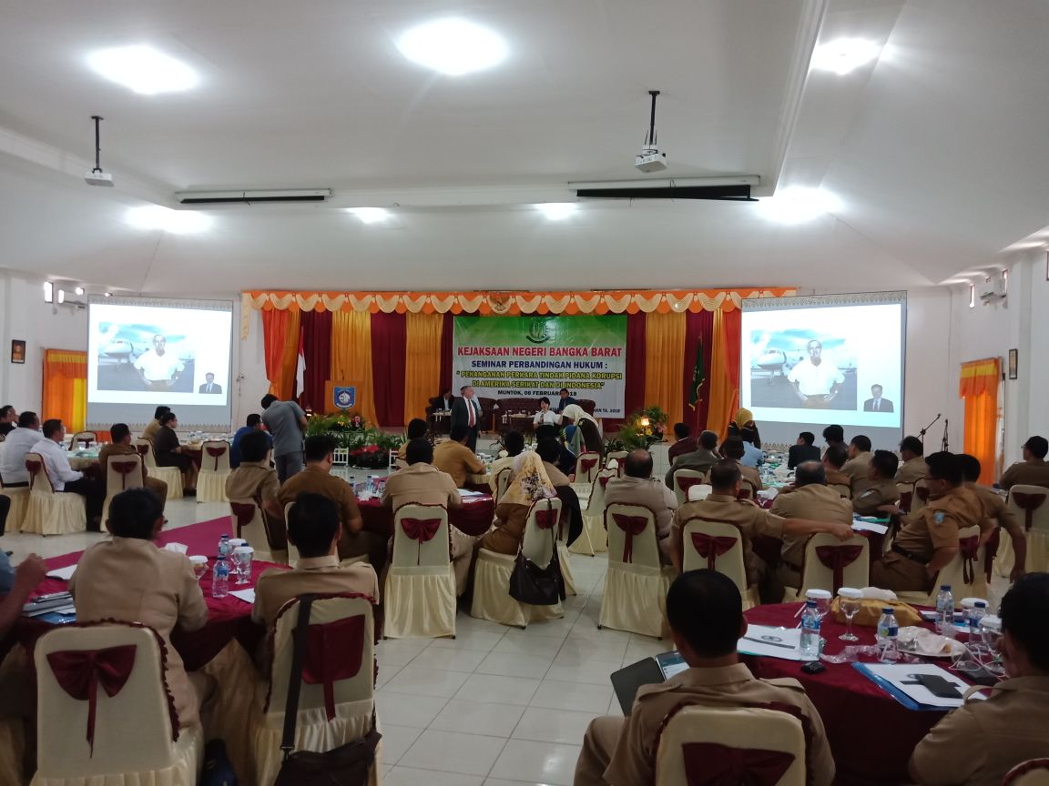 MUNTOK– Kejaksaan Negeri Bangka Barat mengadakan seminar perbandingan hukum tindak pidana korupsi di Amerika Serikat dan Indonesia yang dilaksanakan di Gedung Graha Aparatur Pemkab Bangka Barat pada Selasa (06/2) pagi