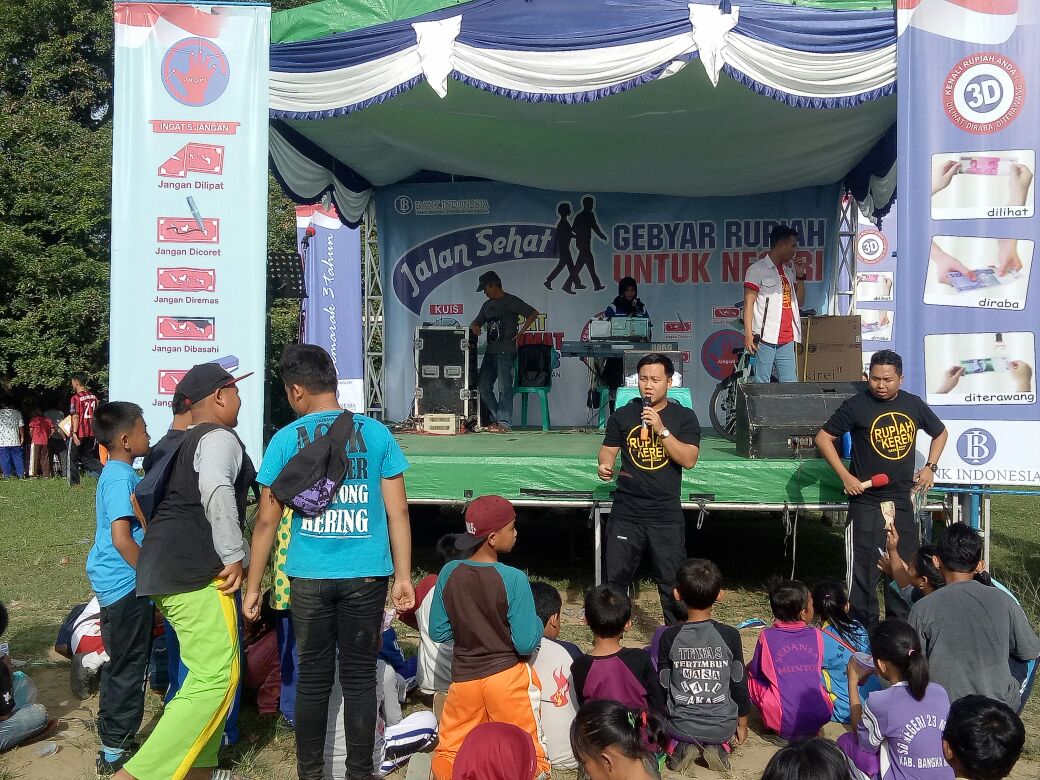 Selain jalan santai BI juga memberikan doorprize, untuk peserta jalan santai.peserta juga mengikuti Sosialisai dengan mengikuti kuis 3C,Cepat, Cermat, Cerdas, dalam aksi teatrikal yang diperagakan oleh Seniman-seniman di Bangka Belitung yang sekaligus memberikan hiburan kepada warga Muntok,dengan guyonan-guyonannya yang membuat warga tertawa geli.