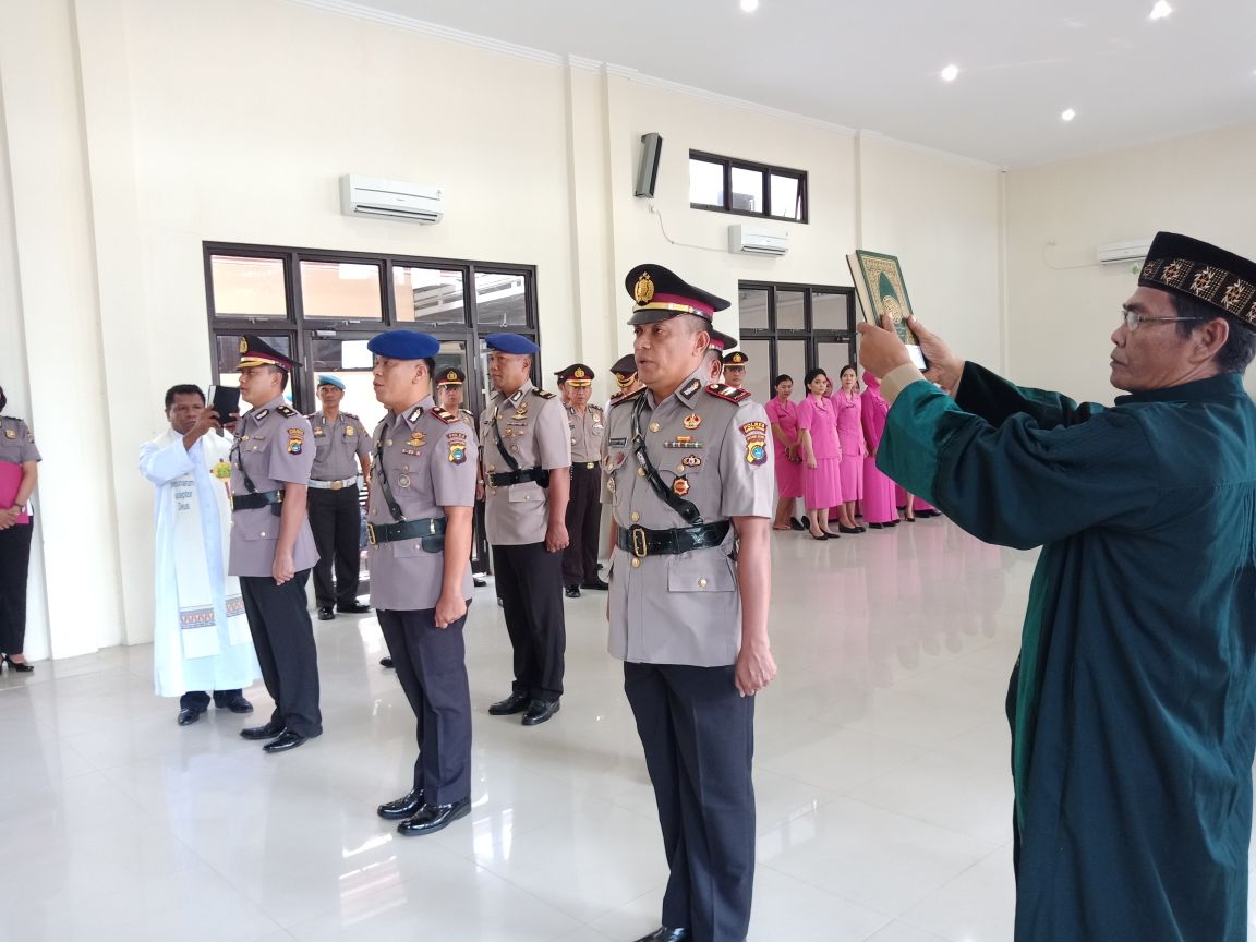 Kapolres Bangka Barat AKBP Firman Andreanto, S.H,S.IK,M.Si memimpin langsung proses serah terima jabatan (Sertijab) jajaran perwiranya yang mengalami rotasi pergantian jabatan atau mutasi pada hari Senin,12 Februari 2018 di Aula Catur Prasetya Polres Bangka Barat.