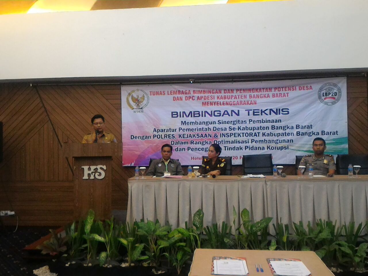 Dewan Pimpinan Cabang Asosiasi Pemerintah Desa (DPC APDESI) Bangka Barat menggelar bimbingan teknis bagi aparatur pemerintah desa se-kabupaten bangka barat serta penandatanganan nota kesepahaman antara APDESI dengan Kejaksaan Bangka Barat dan Polres Bangka Barat di hotel santika pangkalpinang, senin (19/2).