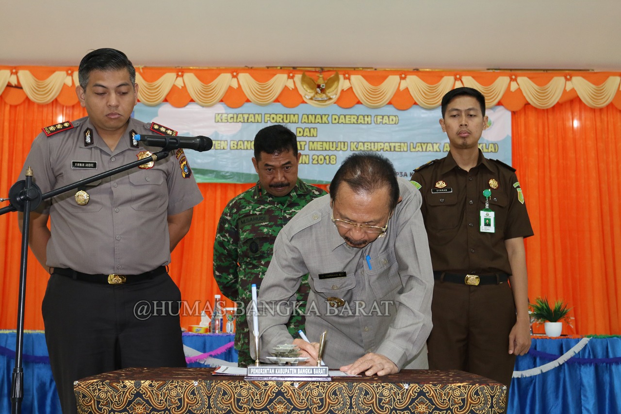 Bupati Bangka Barat, Drs. H. Parhan Ali, MM.,sebelum membuka kegiatan tersebut, Bupati membacakan deklarasi Kabupaten Layak Anak (KBL) serta menandatangani komitmen KBL bersama-sama semua unsur Forkopimda, Ketua PKK Bangka Barat, Ketua DWP Bangka Barat, Kepala OPD dilingkungan Pemkab Bangka Barat, dan perwakilan dari RSJ Prov. Babel.