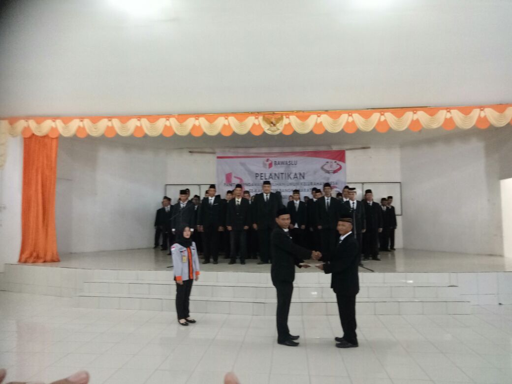 Muntok. Panitia pengawas Kecamatan melantik dan mengambil sumpah 64 Panitia Pengawas Pemilu Kelurahan/ Desa se-kabupaten Bangka Barat tahun 2018. Pelantikan dilaksanakan di gedung Graha Aparatur pemkab Bangka Barat, dilantik oleh Aprianto, Ketua panwaslu kecamatan Muntok, dilanjulan komitmen fakta integritas dibacakan oleh Sandra perwakilan kecamatan panwaslu kelurahan/desa dari Tempilang, disaksikan oleh Bupati H Parhan Ali, Ketua Panwaslu Rio Febri Pahlevi, Ketua KPU Martono, Unsur Forkopimda Bangka Barat, Camat se-kabupaten Bangka Barat, Sabtu (7-4-2018)
