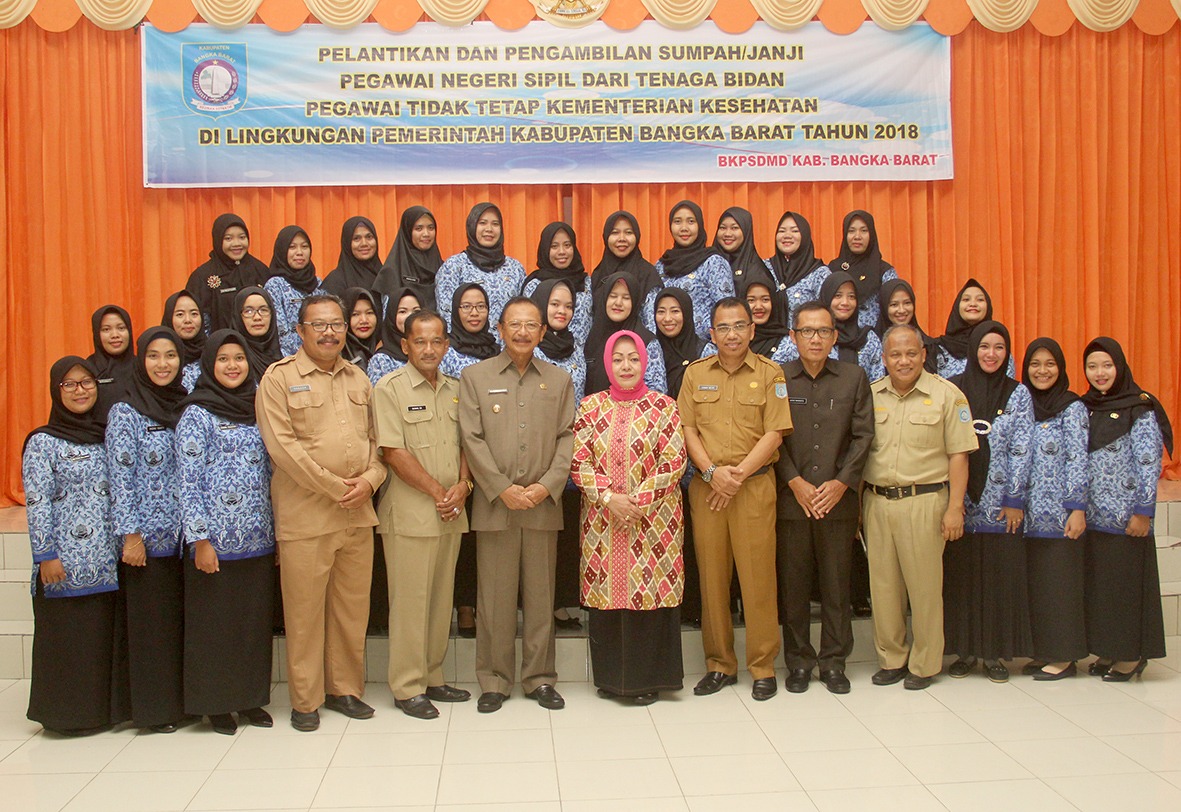 Muntok, Bupati Bangka Barat, H Parhan Ali melantik 30 tenaga bidan pegawai tidak tetap Kementerian Kesehatan di Lingkungan Pemerintah Kabupaten Bangka Barat. Pelantikan dan Pengambilan sumpah/janji Pegawai Negeri Sipil dihadiri juga oleh Sekretaris Daerah, H. Yunan Helmi, Asisten, Staf ahli, BPS, Perwakilan Polres, Kepala OPD, PKK, dan Dharma Wanita Bangka Barat, pada Senin, (14/5) di Graha Aparatur Pemkab Bangka Barat.