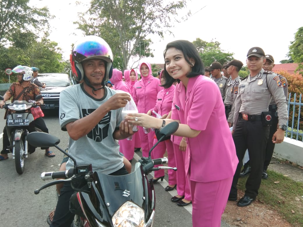 Polres Bangka Barat membagikan hidangan berbuka puasa kepada Masyarakat mentok Kapolres langsung turun ke jalan membagikan berupa takjil gratis untuk para pengemudi dan pengendara kendaraan bermotor yang melintas di Simpang empat Lapas mentok, Jumat (25/5/2018).