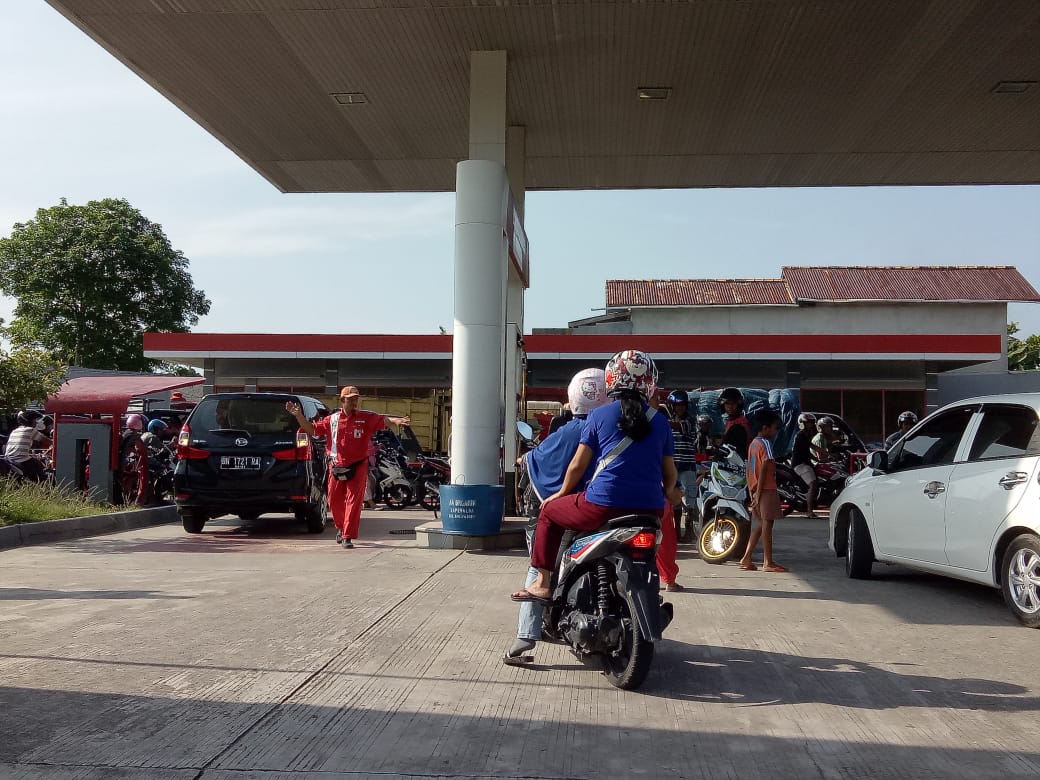 Menurut petugas SPBU kp Jawa Karli mengatakan antrean panjang kendaraan terjadi karena listrik mati, hari libur, dan juga faktor kendaraan yang mudik yang mengisi bahab bakar di SPBU.