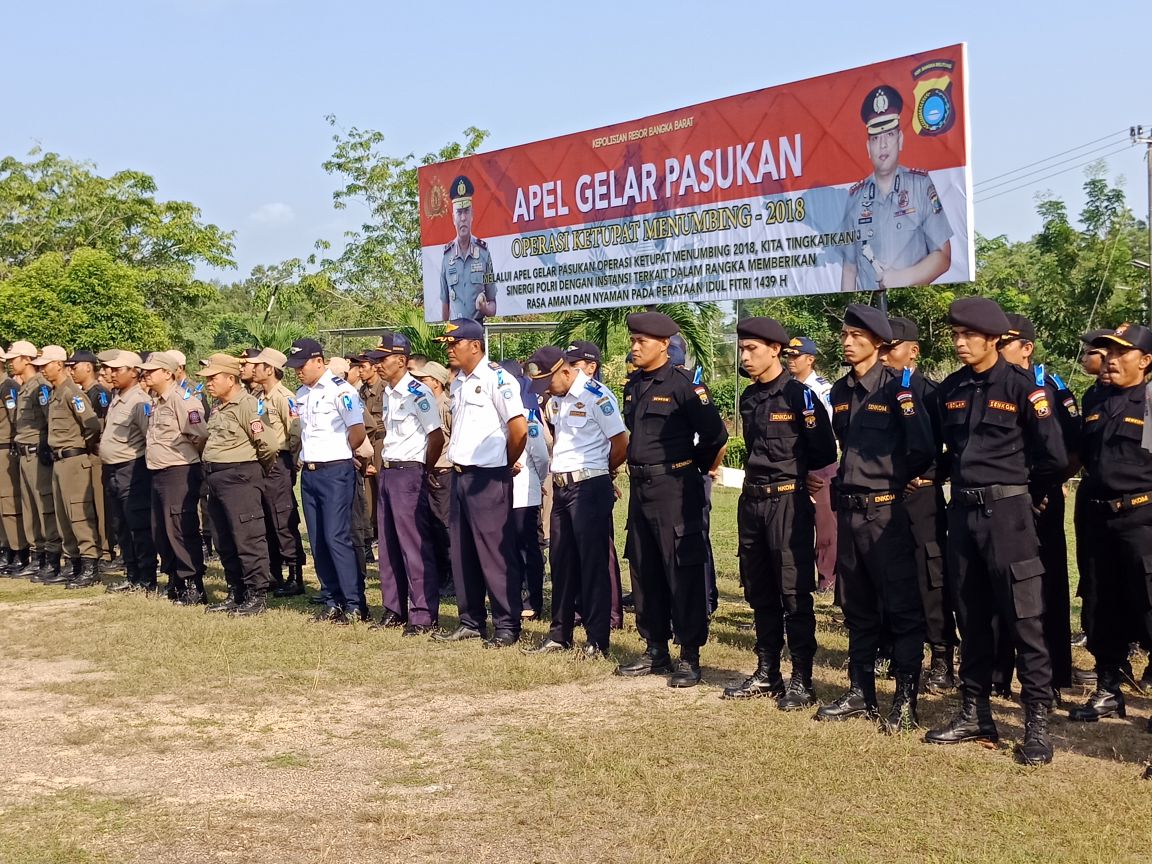 Polres Bangka Barat menggelar apel gelar pasukan Operasi Ketupat 2018 di Mapolres Bangka Barat , Rabu (6/6/2018)
